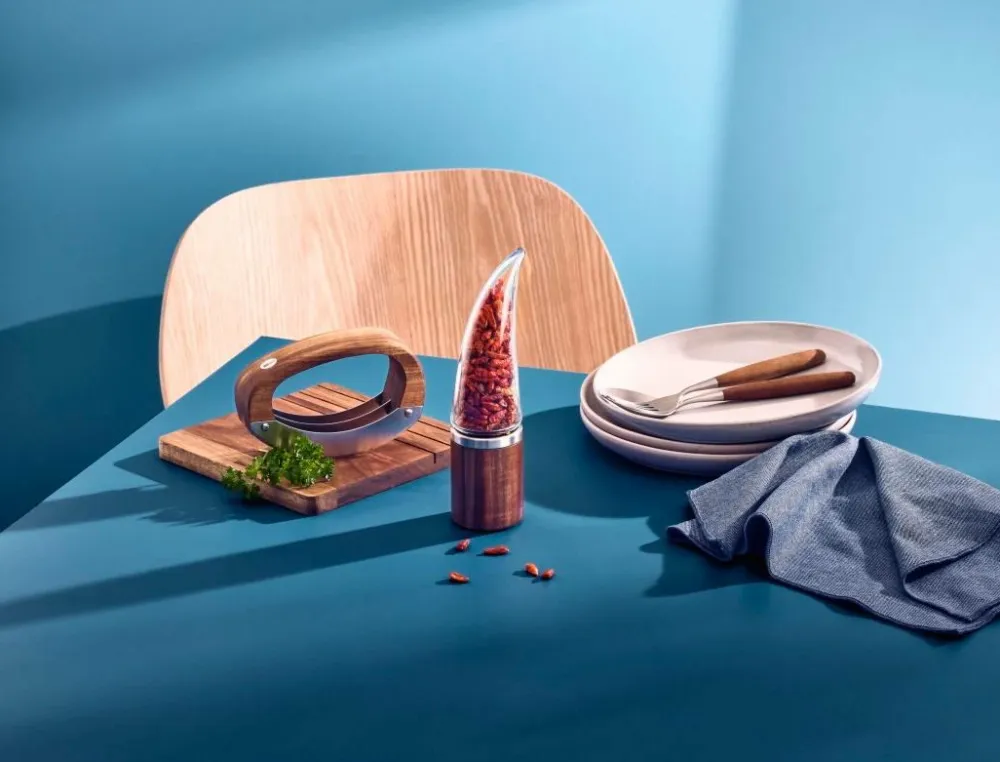 Skab en helt ny smagsoplevelse ved at skære i stedet for at male. Mølle af høj kvalitet lavet af rustfrit stål, akacietræ og akryl. Precisecut® frigiver æteriske olier for fuld aromaudvikling. Forarbejder en lang række tørrede urter og krydderier, f.eks. chili, koriander, fennikel, grøn eller pink peber osv.
