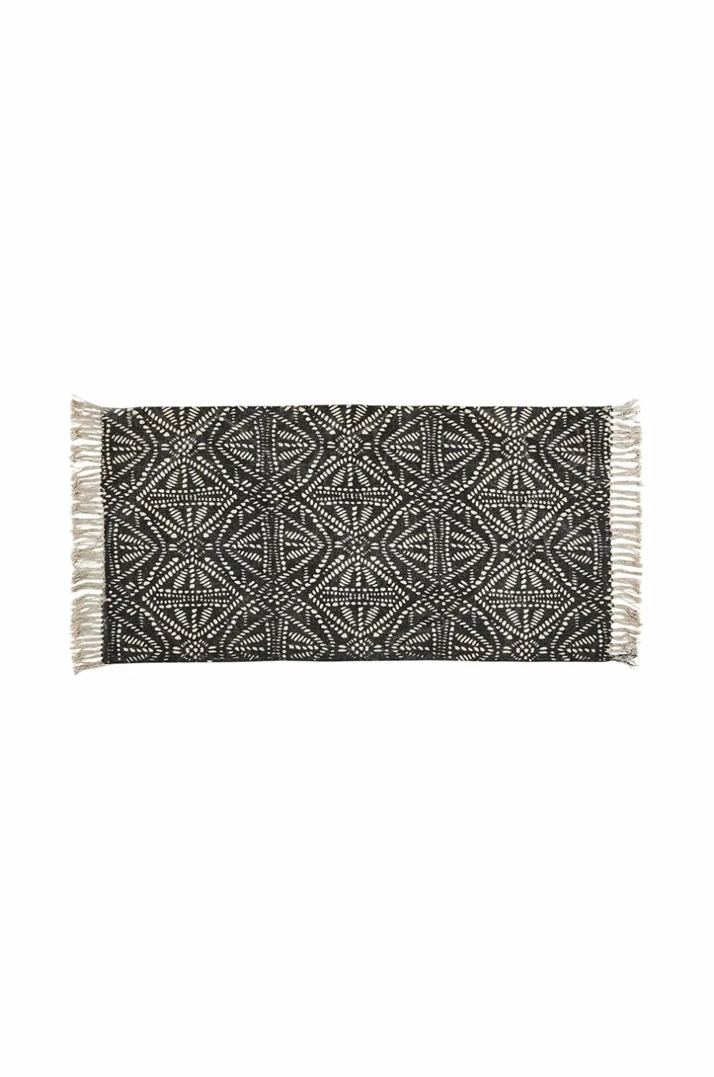 Et mønstret bomuldstæppe, der giver dit hjem en bohemeagtig stemning med frynser langs de korte sider.