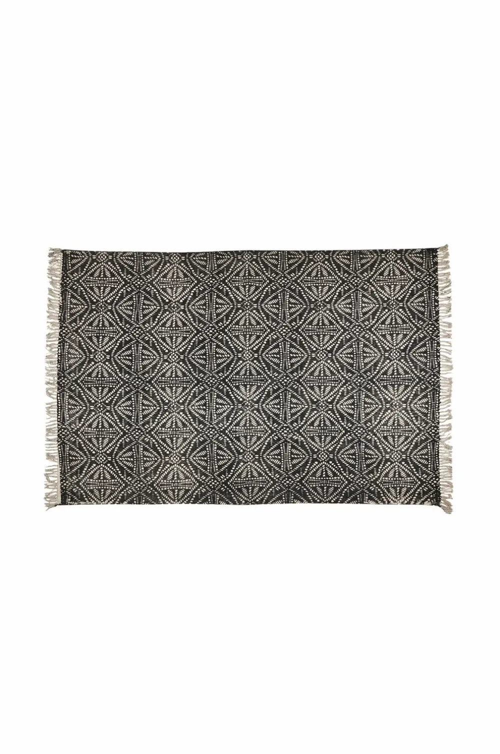 Et mønstret bomuldstæppe, der giver dit hjem en bohemeagtig stemning med frynser langs de korte sider.