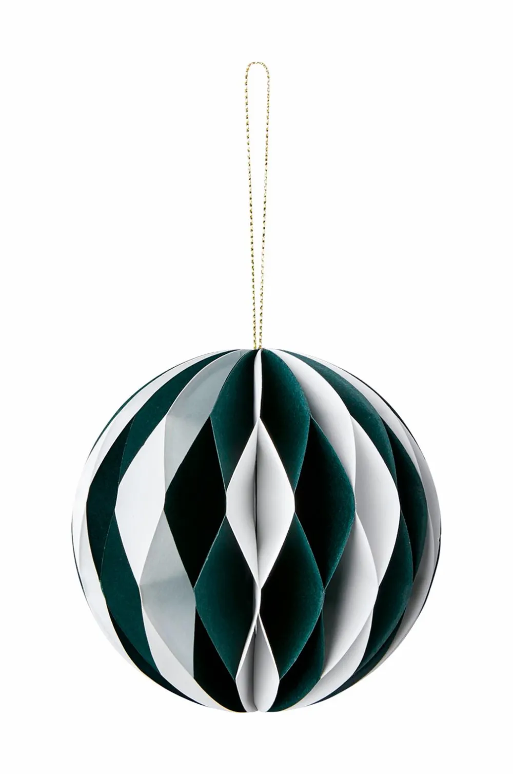 uni julepynt i grøn og hvid giver en frisk og naturlig fornemmelse til din juledekoration. Den er lavet af omhyggeligt foldet papir og kombinerer bløde farver med et rent, tidløst design. Perfekt til juletræet eller som en dekorativ detalje, der giver dit hjem et roligt og festligt præg.