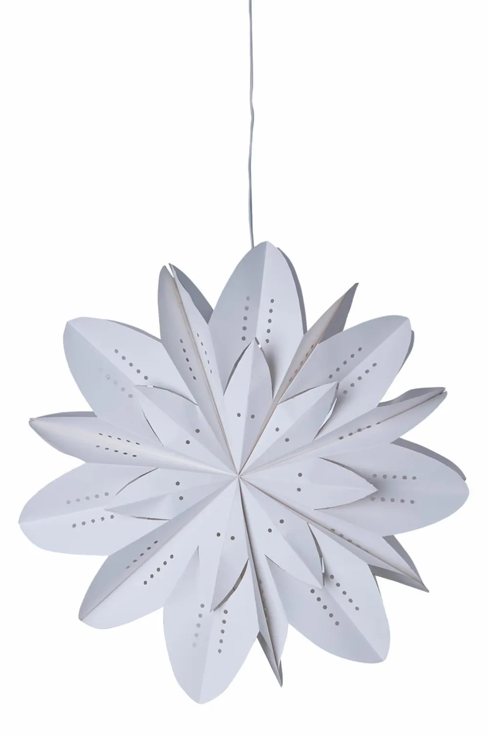 uni adventsstjerne i hvid spreder et blødt og roligt lys med sit enkle, tidløse design. Den er lavet af smukt foldet papir og tilfører en følelse af ro og elegance til dit hjem. Perfekt i vinduet eller som en raffineret dekorativ detalje, der lyser op i vintersæsonen.