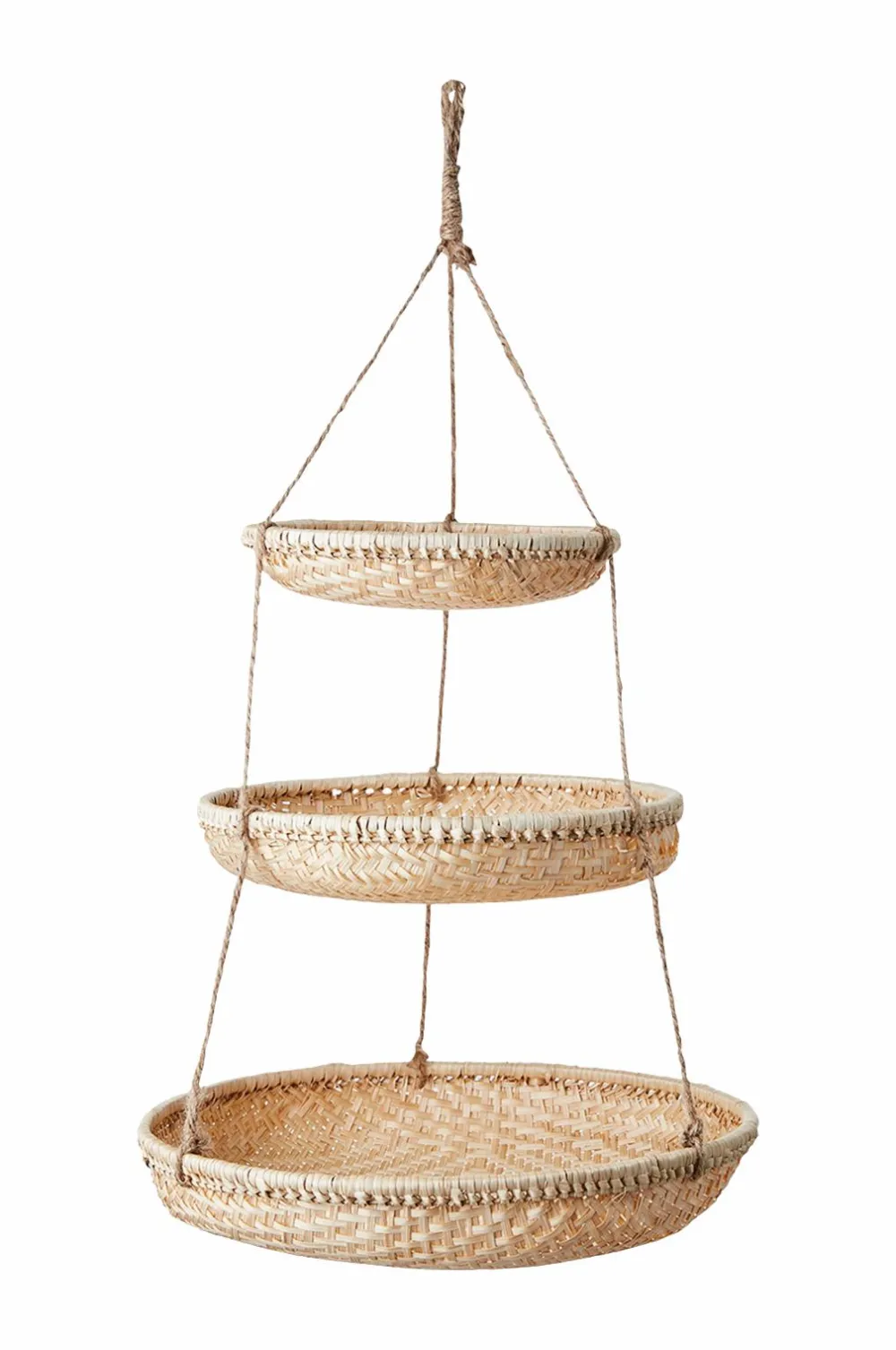 Delikat, vævet bambus skaber en øjeblikkelig sommerfølelse med denne hængende kurv. Også en smuk detalje til køkkenet. Farverne og strukturerne er inspireret af naturens egen palet.