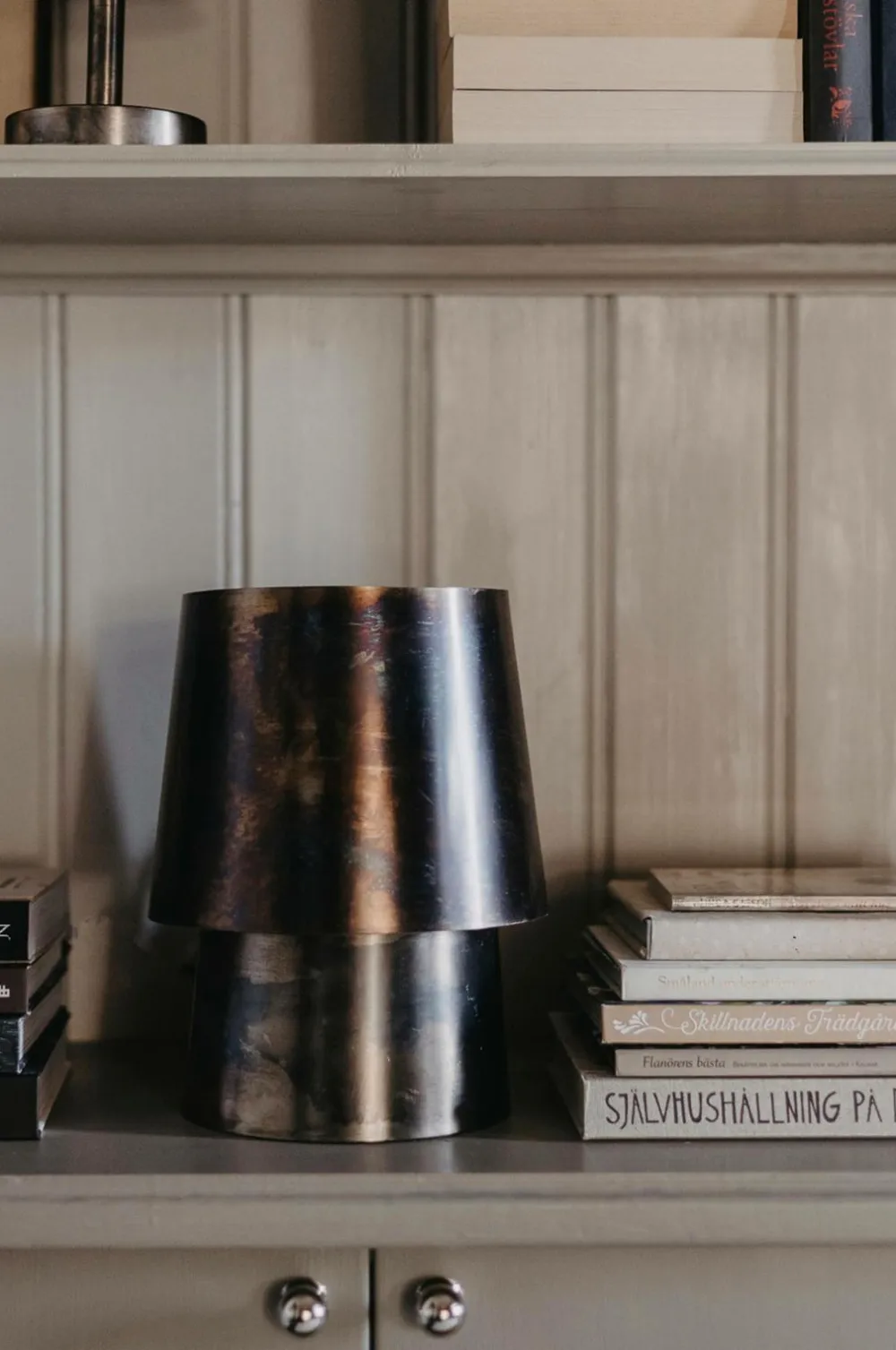Svampelampen passer perfekt i et vindue, på en bogreol eller på en skænk. Giver et dekorativt lys både opad og nedad. Let at placere og fås i to overfladebehandlinger, der giver produktet en ekstra dimension og gør hvert produkt unikt. Fås i to størrelser og to finish.