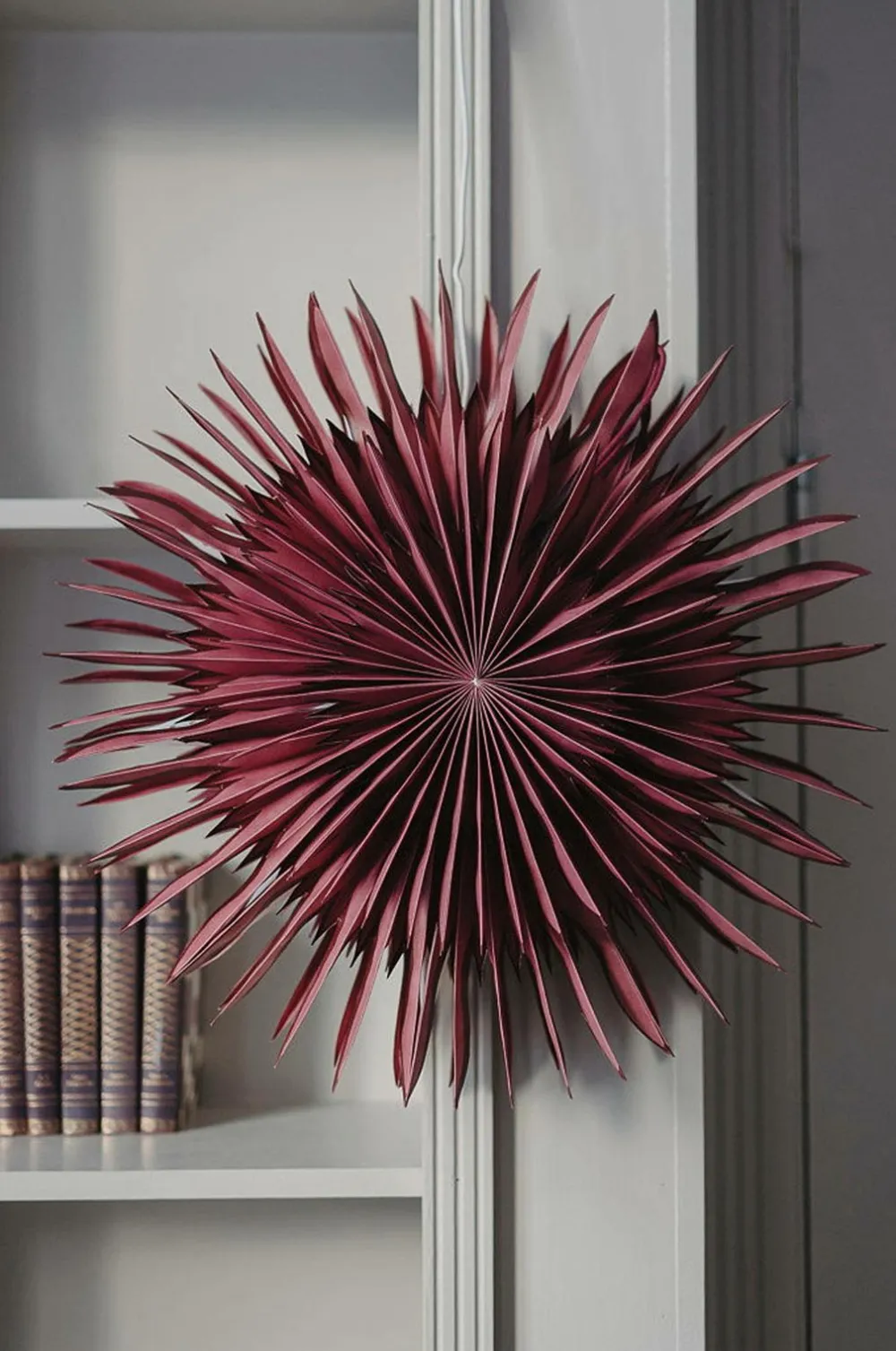 Desiré er en elegant mørkerød stjerne. Hver papirfold er trykt med en mørkere rød farve i konturerne for at give en ekstra flot dybde, når den tændes. Må kun bruges med led-lampe. Ledningssæt / loftophæng og lyskilde medfølger ikke.