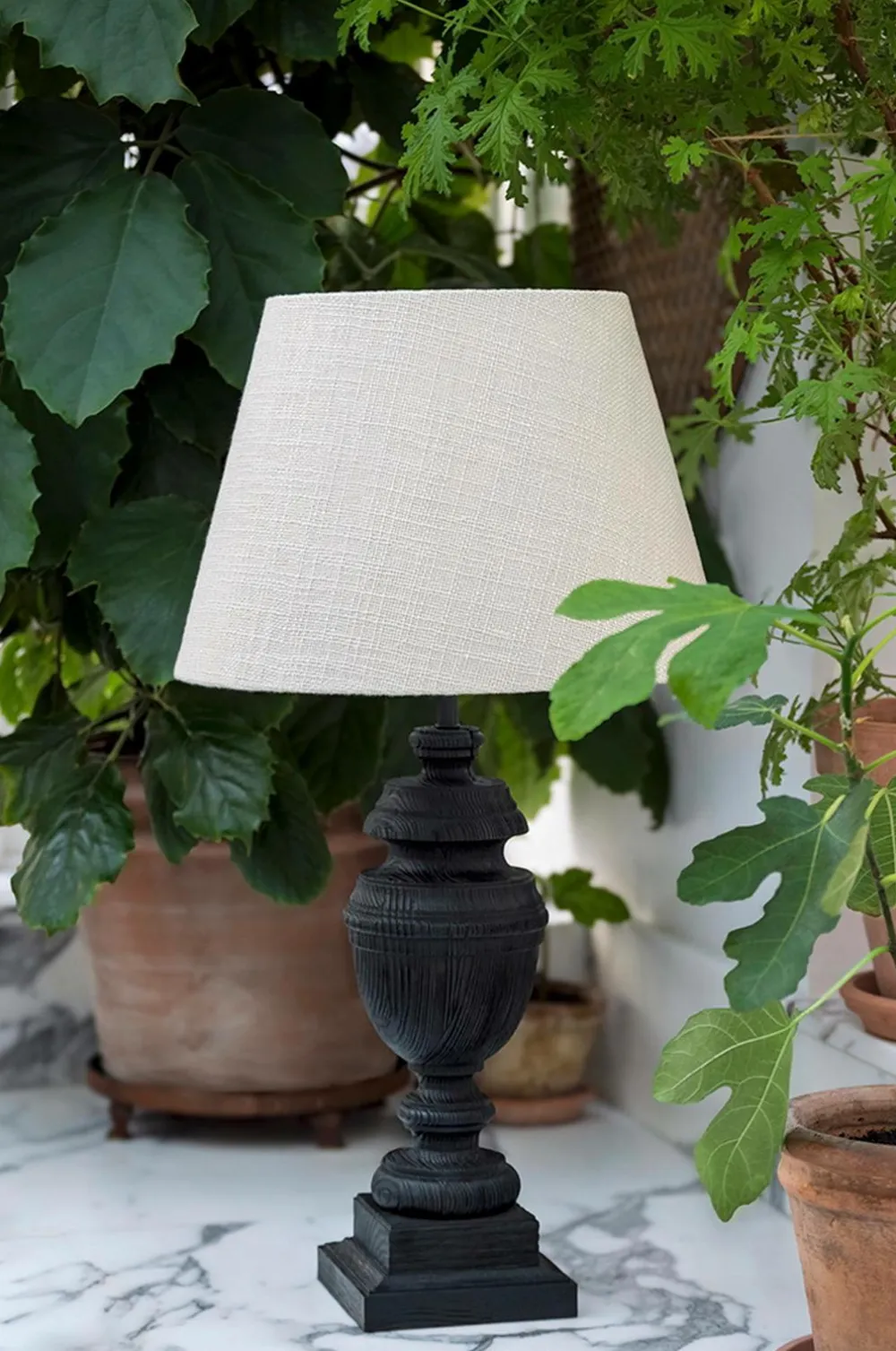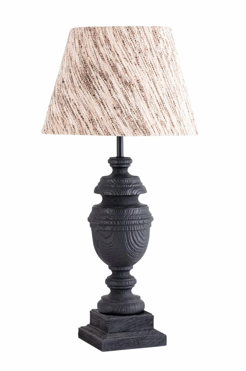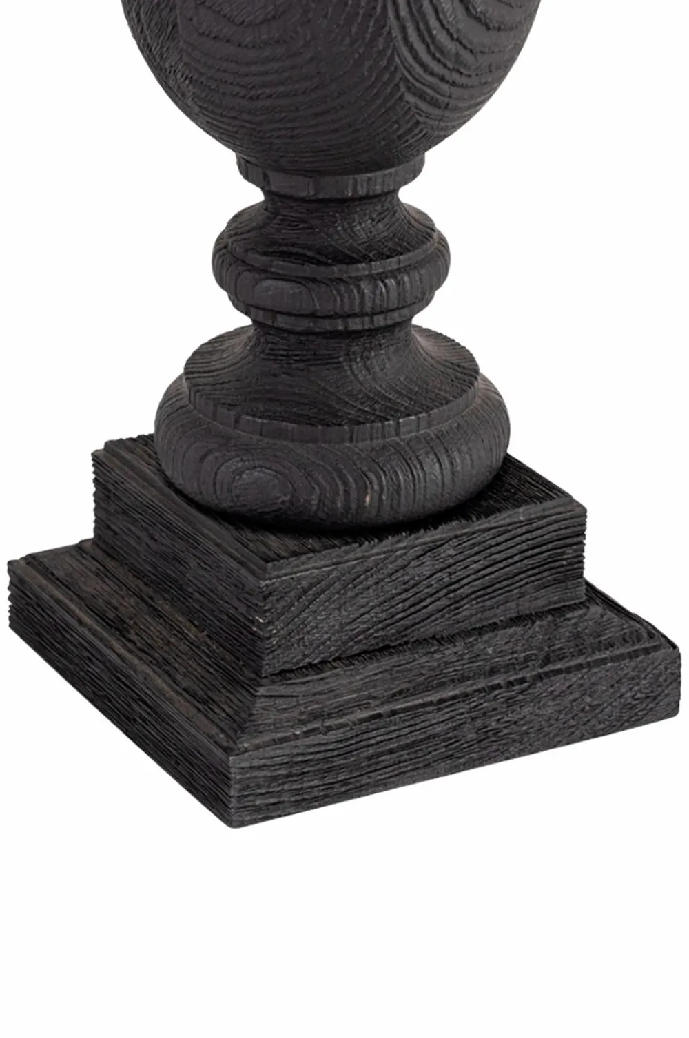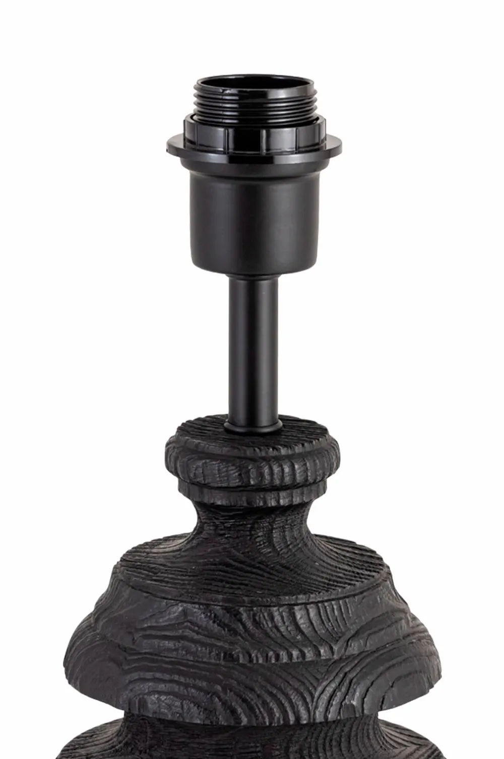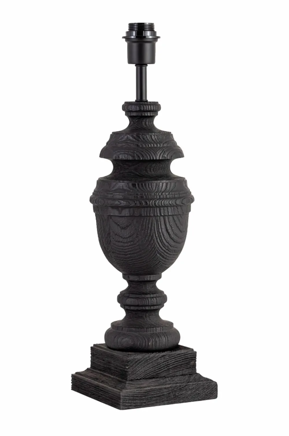 En klassisk lampesokkel lavet af massivt fyrretræ. Overfladen er sandblæst og bejdset sort, så årerne fremstår tydeligt. Kombiner med en af vores mange lampeskærme.