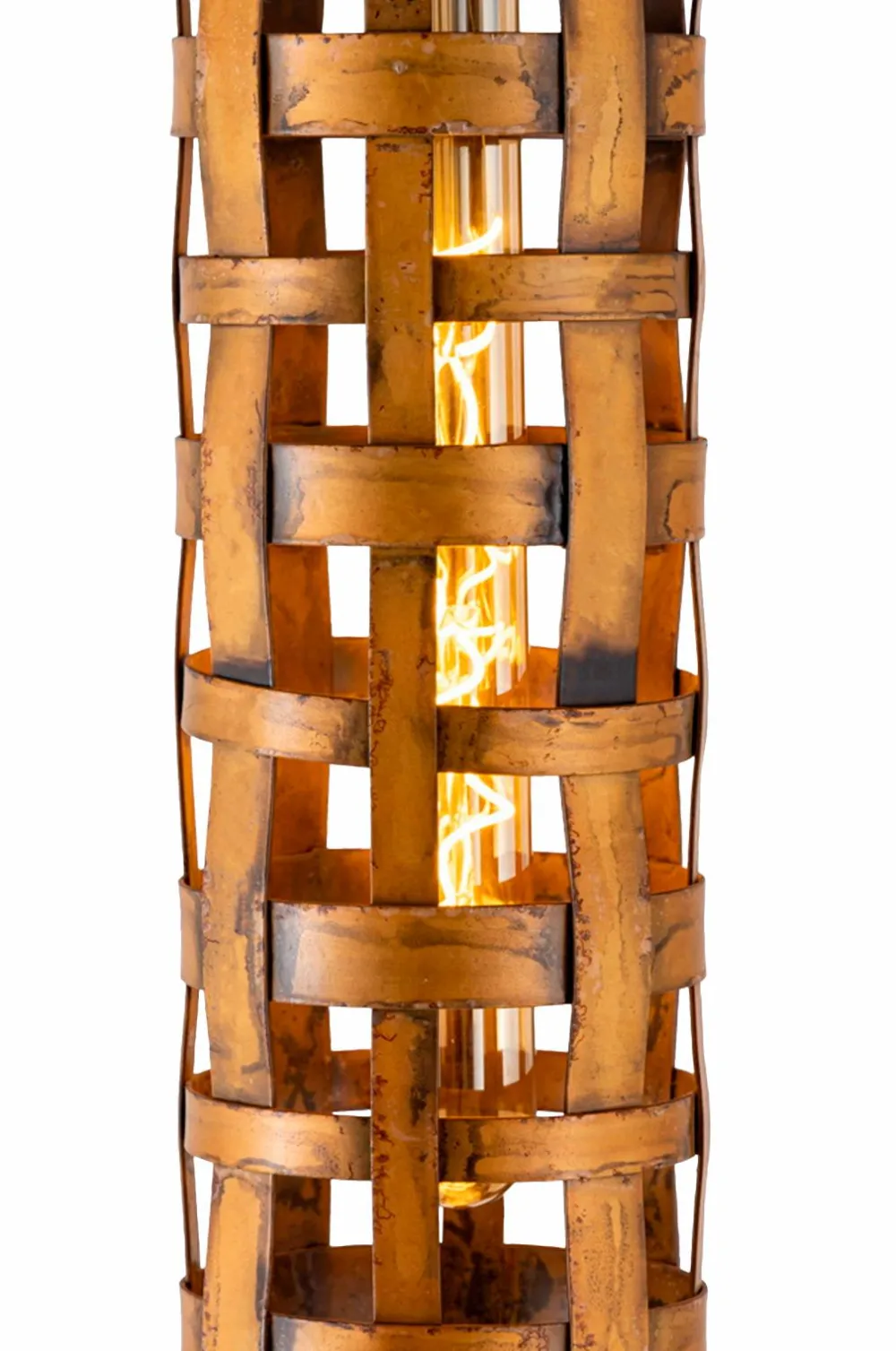Kolonn-loftslampen er lavet af “flettede” metalstrimler. Sælges komplet med loftsophæng. Fås i tre størrelser, som kan hænges sammen i en gruppe på tre eller enkeltvis. Det er en loftslampe, der giver et smukt og dekorativt lys, og frem for alt spreder den et smukt skyggebillede i rummet. Ved at vælge forskellige lyskilder kan man skabe helt forskellige lysbilleder med denne lampe. Passer i et vindue, over en bardisk i et køkken eller til at hænge i grupper over et sofabord. Ledning/ophæng medfølger ikke og kan suppleres med loftsstik 2249813 fra Alde & Lind, som fås i flere farver.