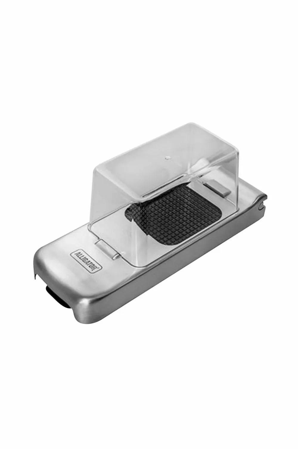 Gør madlavningen nemmere med alligator-løgskæreren i rustfrit stål! Udstyret med tre udskiftelige knivsæt, et standardsæt på 6 x 6 mm til f.eks. løg, et knivgitter på 12 x 12 mm til f.eks. pommes frites og et knivsæt på 3 x 3 mm til finhakning af f.eks. hvidløg eller ingefær. Løgskæreren leveres med en opsamler, der nemt samler det, du skærer. Den robuste konstruktion gør løgskæreren til et almindeligt værktøj i mange professionelle køkkener. Mål på løgskæreren (uden opsamler) 28 x 10,5 cm. Nu med 57% større opsamler på hele 1100 ml