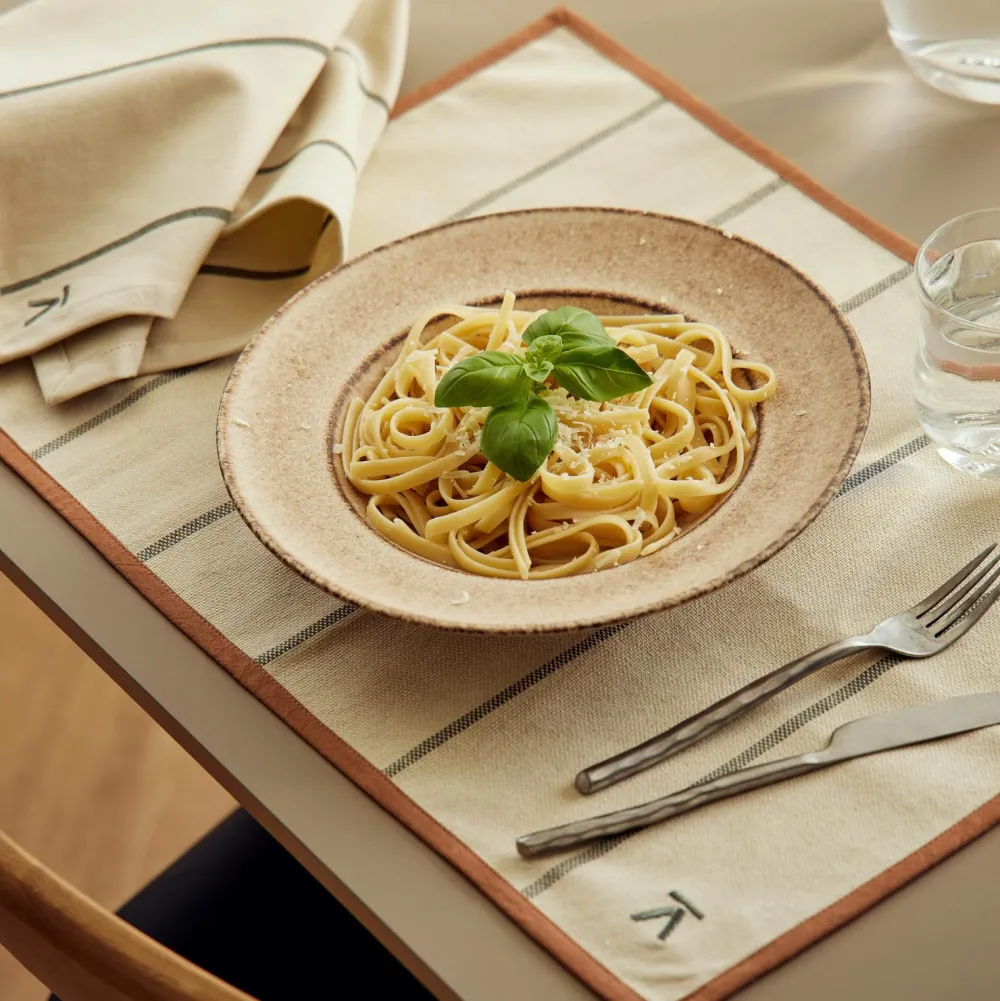 Andersen-dækkeservietten er fremstillet af 100 % bomuld og har et enkelt og tidløst design. Med elegante striber opnår dækkeservietten et slankt udtryk, der tilfører både elegance og funktionalitet til borddækningen. Andersen-dækkeservietten er en praktisk og funktionel løsning, der beskytter dit spisebord og samtidig tilføjer et æstetisk touch til en personlig borddækning. Dækkeservietterne sælges enkeltvis. Plejevejledning: Dækkeservietten kan vaskes ved 60 grader. Størrelse: 50×36 cm. Design: Kira Usbeck.
