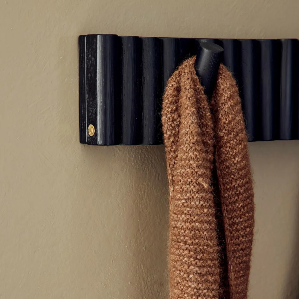 Mono Coat Rack fra Andersen Furniture er en smuk og enkel knagerække i sortmalet ask og er designet med et enkelt og monotont look. Coat Rack har flere kroge i én knagerække, hvor overtøj og bøjler hænges på krogen ved at vippe en af knagerækkens knager ned. Den er designet af den danske designerduo Says Who, som har fokuseret på at skabe en knagerække med et elegant udtryk. Mono Coat Rack er inspireret af trenden med “small living”, hvor alle hjemmets kvadratmeter udnyttes med et udvalg af funktionelle møbler og boliginteriør. Den kan bruges i de fleste rum, men er særligt velegnet i entréen, soveværelset eller køkkenet. Knagerækken er nem at hænge op med skjulte nøglehulsbeslag på bagsiden. Et elegant og diskret Andersen-logo i messing er monteret på siden.