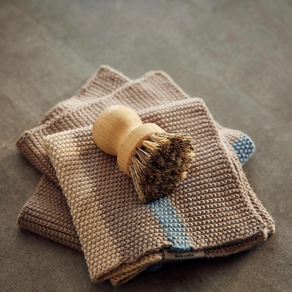 Andersen viskestykker er fremstillet af 100 % bomuld i en blød, strikket kvalitet uden mikrofiber eller plast, hvilket gør dem til et godt valg til dit køkken. Andersen viskestykker er det perfekte tilbehør til dit køkkentekstil. De lyse farver og enkle striber tilføjer karakter og passer perfekt ind i ethvert køkken – en lille detalje, der gør hverdagen lidt mere behagelig. Brug dem sammen med Andersen køkkenhåndklæder eller viskestykker for at skabe harmoni i din køkkenindretning. Andersen viskestykker er designet til daglig brug og kan tåle at blive vasket igen og igen. Viskestykkerne sælges i sæt af 2. Viskestykkerne er ikke identiske. Tip: Det anbefales at udskifte dine viskestykker dagligt for optimal hygiejne. Plejeinstruktioner: Maskinvask ved 60 °C. Vask med lignende farver. Må ikke tørretumbles. Størrelse: 27×27 cm. Design: Kira Usbeck.