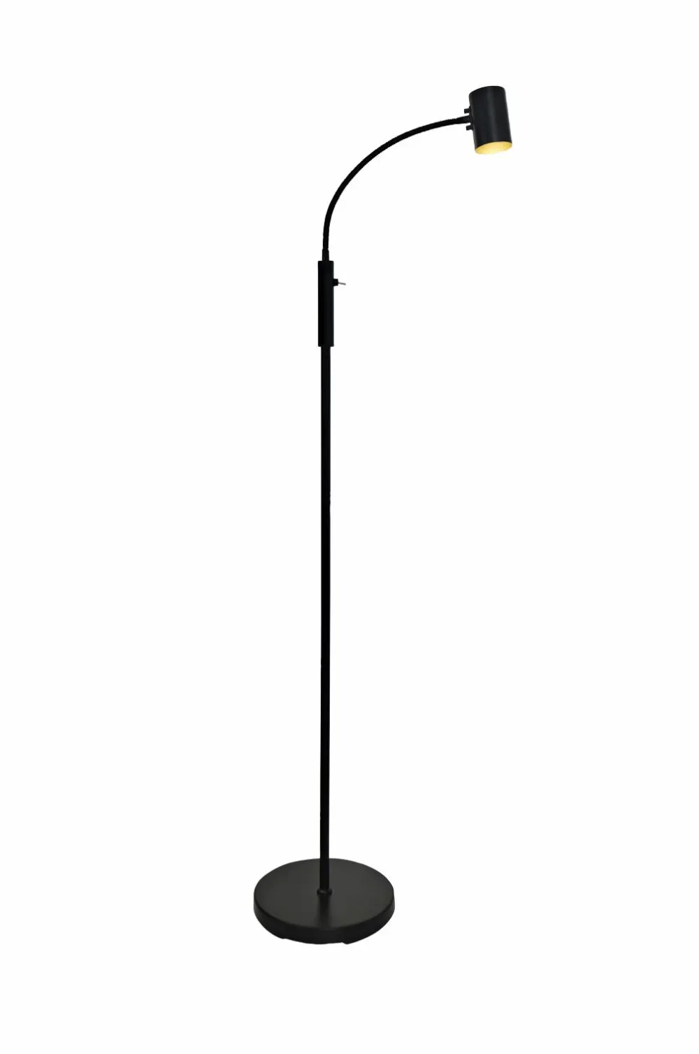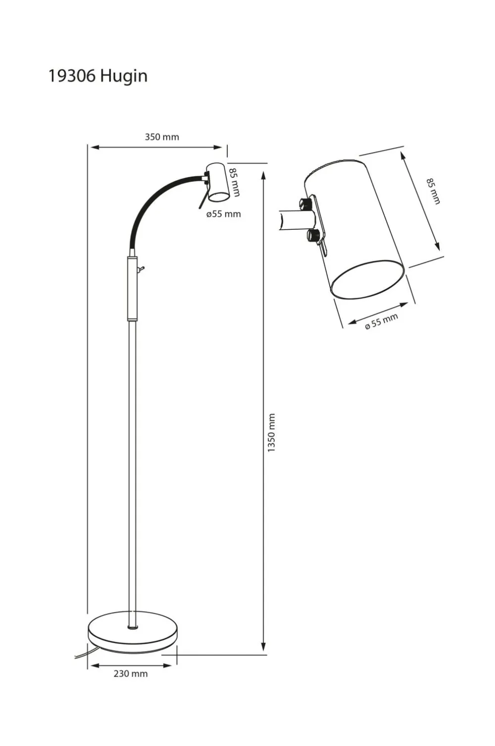 Den praktiske gulvlampe hugin i metal passer med sit enkle design fint ind i de fleste hjem. Med den bøjelige flexarm kan du nemt styre lyset efter dine præferencer. Afbryderen er let tilgængelig på lampens stang. Kombiner den med vores andre lamper fra hugin familien.