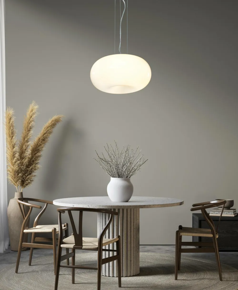 For den smukke manet har vi hentet inspiration fra havet. En loftpendel, der er ideel for dem, der ønsker funktionel belysning i et originalt og rent design. Den bløde, buede skærm af hvidt glas giver et harmonisk indtryk og et jævnt, blødt lys. Manet loftpendel er perfekt som generel belysning i de fleste hjem og rum.