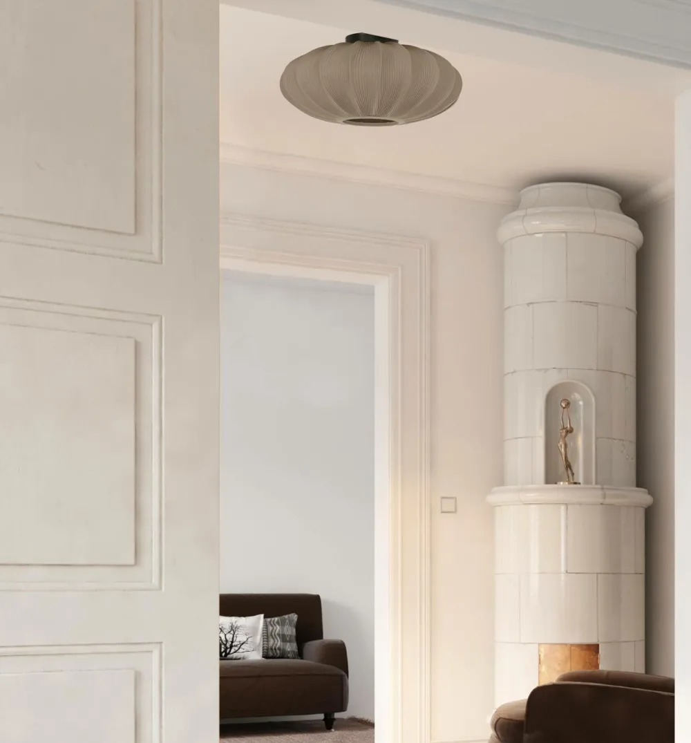 Mamsell plafond er beklædt med fint plisseret stretchstof, der giver et behageligt let dæmpet lys. Mamsell er en favorit i soveværelset, dagligstuen og entreen. Mamsell plafond kan også kombineres med andre lamper i Mamsell-serien.