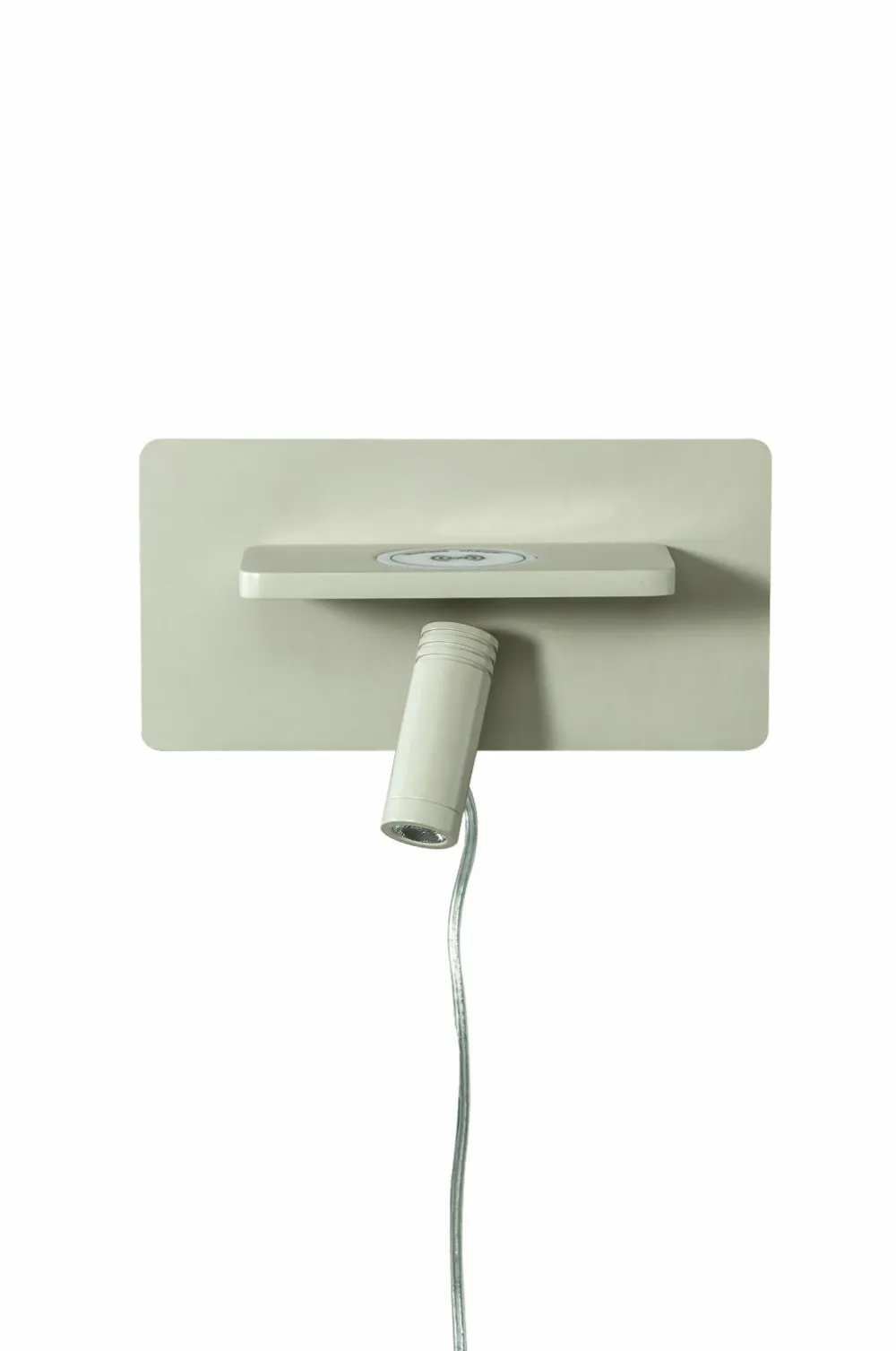 Cargador – en smart vægglampe, der forener funktion og design. Den har en læselampe med rettet lys foran og indirekte belysning bagpå, som du nemt betjener med de dobbelte tænd/sluk-knapper på undersiden af vægpladen. Cargador har også en praktisk hylde med en trådløs oplader til mobiltelefonen og en USB-port til de enheder, der ikke understøtter trådløs opladning.