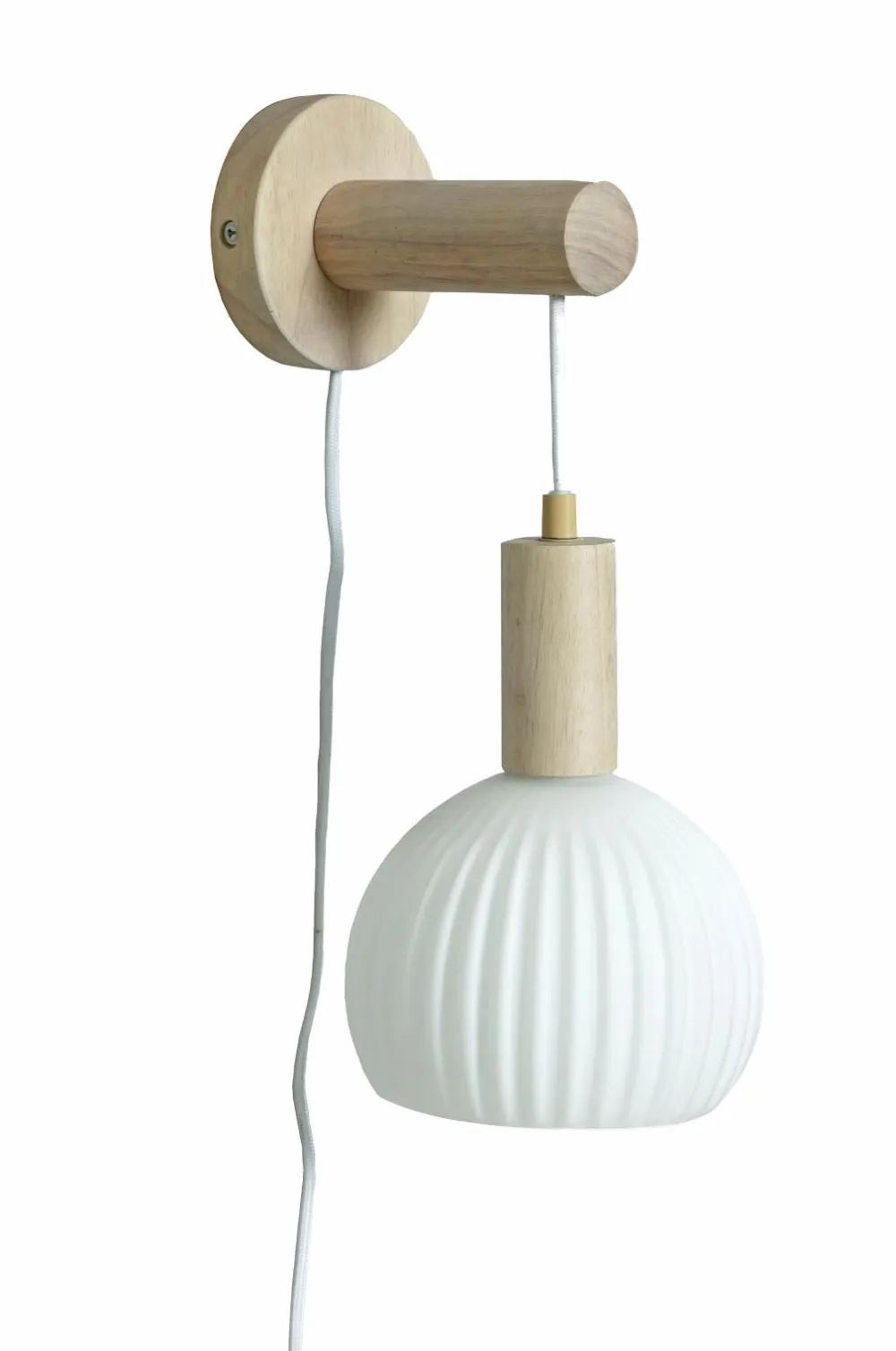 Lapponia Væglampen i glas og hvidolieret træ giver dit hjem et naturligt og varmt præg. Med en ribbet glaskop, der skaber et jævnt og blødt lys. Lapponia fungerer lige så godt som stemningsbelysning i stuen som læselampe ved siden af sengen. Et stilfuldt valg til det skandinaviske eller moderne hjem.