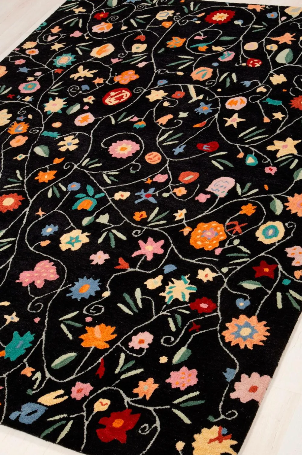 Botanica er et blødt og dejligt tuftet tæppe med motiver af en blomstereng i forskellige farvetoner, fremstillet af førsteklasses uld.