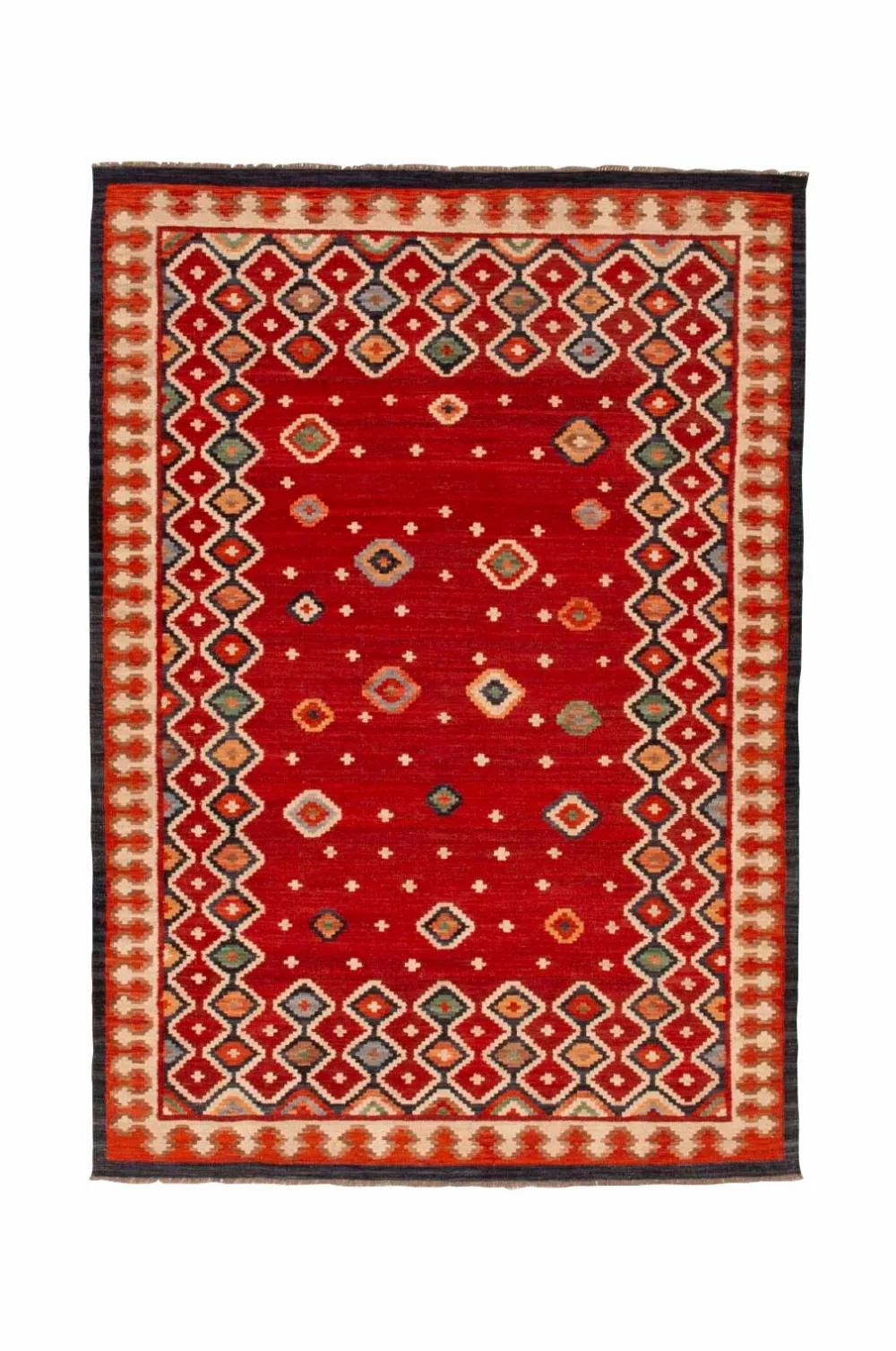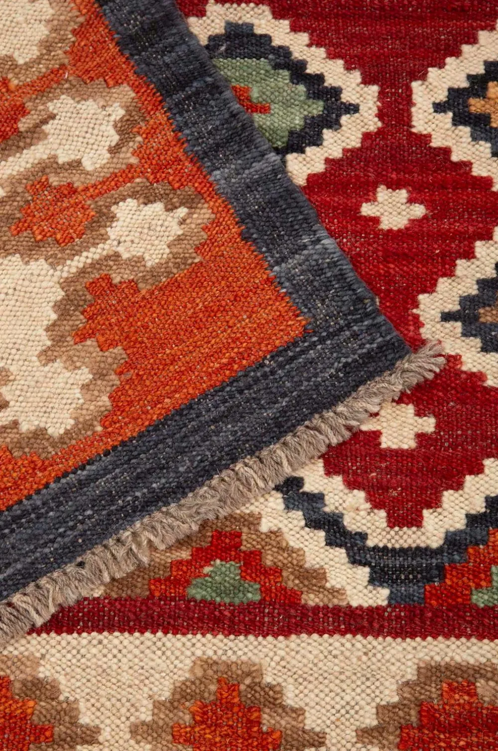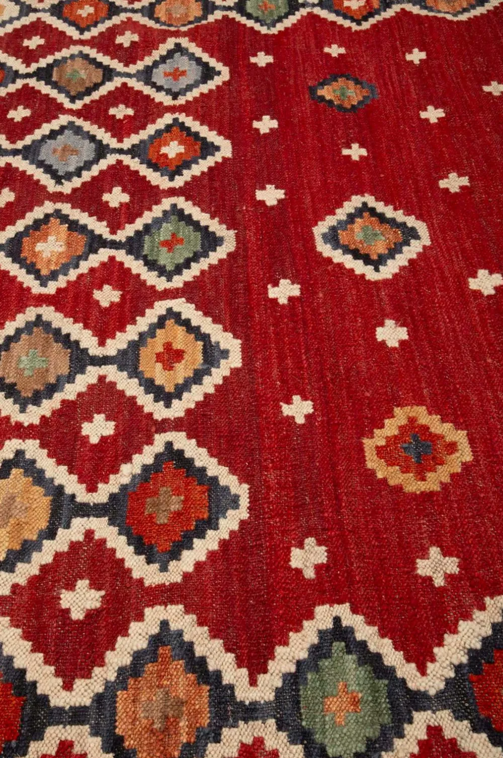 Et klassisk vævet tæppe med et heldækkende geometrisk mønster. Det vegetabilsk farvede garn garanterer en smuk og harmonisk farveskala, og fordi det er vævet i 100 % uld, er det både varmt og smudsafvisende. Et tæppe, der er nemt at placere, og som passer lige så godt foran den knitrende ild i din yndlingslænestol som i køkkenet. Alle vores kelim multi er vendbare, så du kan bruge begge sider af tæppet.