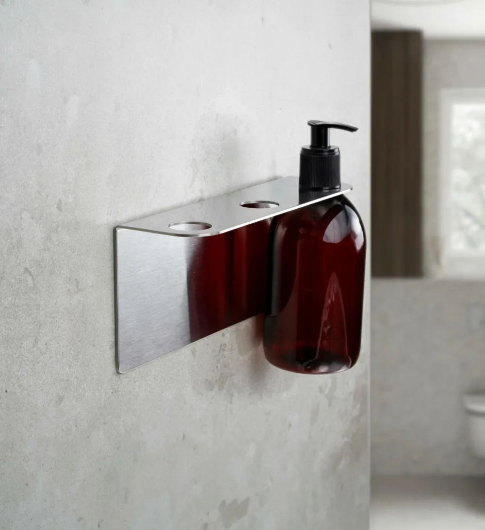 Base Soap Pump Holder i rustfrit stål er den perfekte løsning til at organisere dit badeværelse eller køkken på en stilfuld og praktisk måde. Med tre flaskeholdere kan du nemt holde sæbe-, shampoo- og balsamflasker væk fra brusegulvet eller holde både opvaskemiddel og håndsæbe inden for rækkevidde på køkkenbordet. En elegant løsning, der passer til både professionelle miljøer som hoteller, restauranter og kontorer samt til hjemmet. Installationen er enkel og værktøjsfri takket være den selvklæbende bagside. Følg blot trinene i vores installationsvejledning.