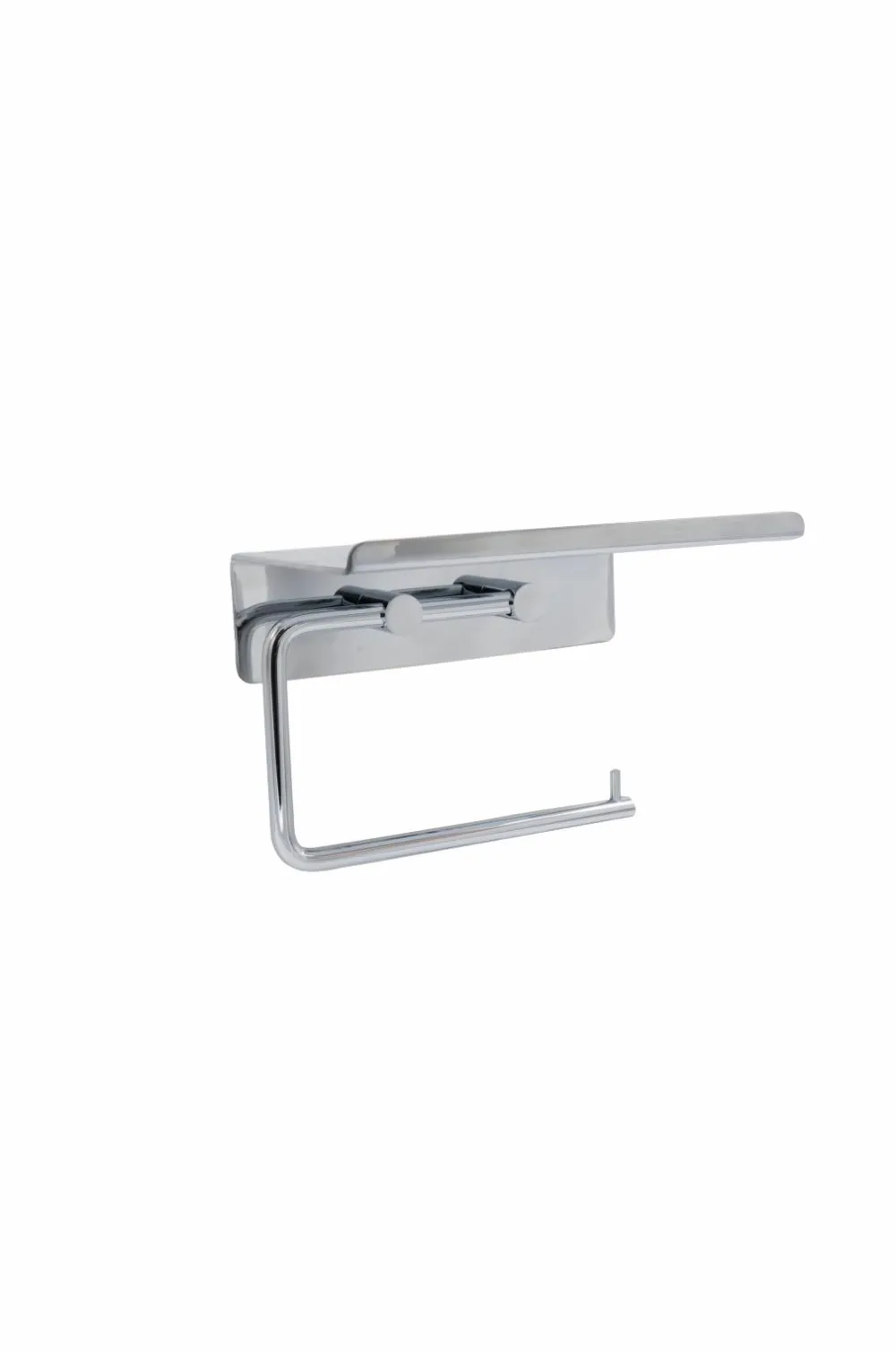 Base toiletpapirholder med hylde er en moderne løsning, der opfylder nutidens badeværelsesbehov med en følelse af elegant design. Fremstillet af massivt rustfrit stål. Den kombinerer to praktiske funktioner i én, og den smarte hylde giver dig mulighed for at dekorere med duftpinde, duftlys eller et sted at opbevare din mobiltelefon. Med sit tidløse og slanke design passer den problemfrit ind i forskellige badeværelsesindretninger. Det er nemt at installere takket være den selvklæbende bagside, så du ikke behøver at bore i væggen.
