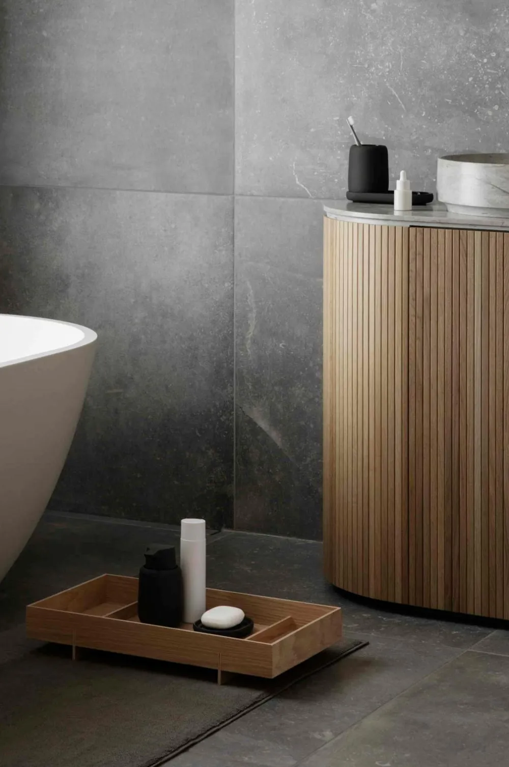 SONO bakke i keramik fra Blomus. SONO bakke taler et roligt formsprog. Læg din yndlingsshampoo eller luksuriøse cremer på bakken og skab din helt egen hjemmespa.