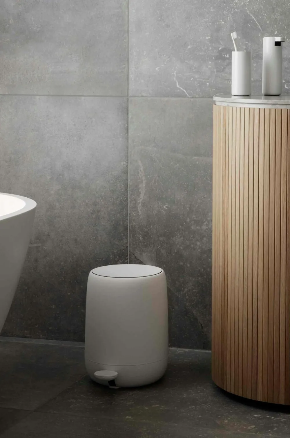 Stilren pedalspand med soft close-funktion. Pedalspanden rummer 3 liter og tilhører SONO badeværelsesserien med alle de væsentlige dele til et friskt, afslappet badeværelse. Mål: H 25,5 cm, diameter 20 cm, B 24 cm. Volumen: 3 L. Materiale: Plast/Silikone