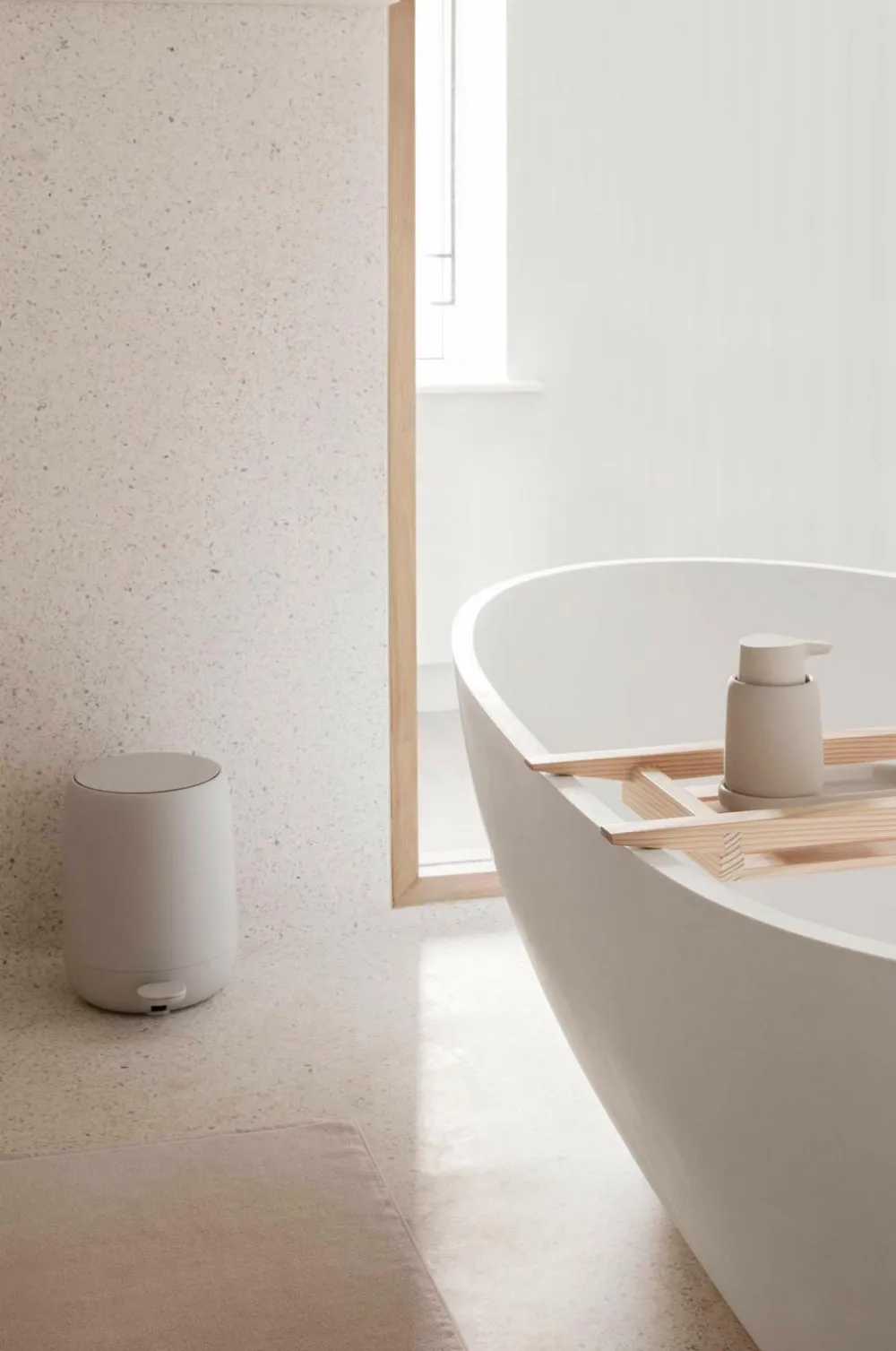 Stilren pedalspand med soft close-funktion. Pedalspanden rummer 3 liter og tilhører SONO badeværelsesserien med alle de væsentlige dele til et friskt, afslappet badeværelse. Mål: H 25,5 cm, diameter 20 cm, B 24 cm. Volumen: 3 L. Materiale: Plast/Silikone