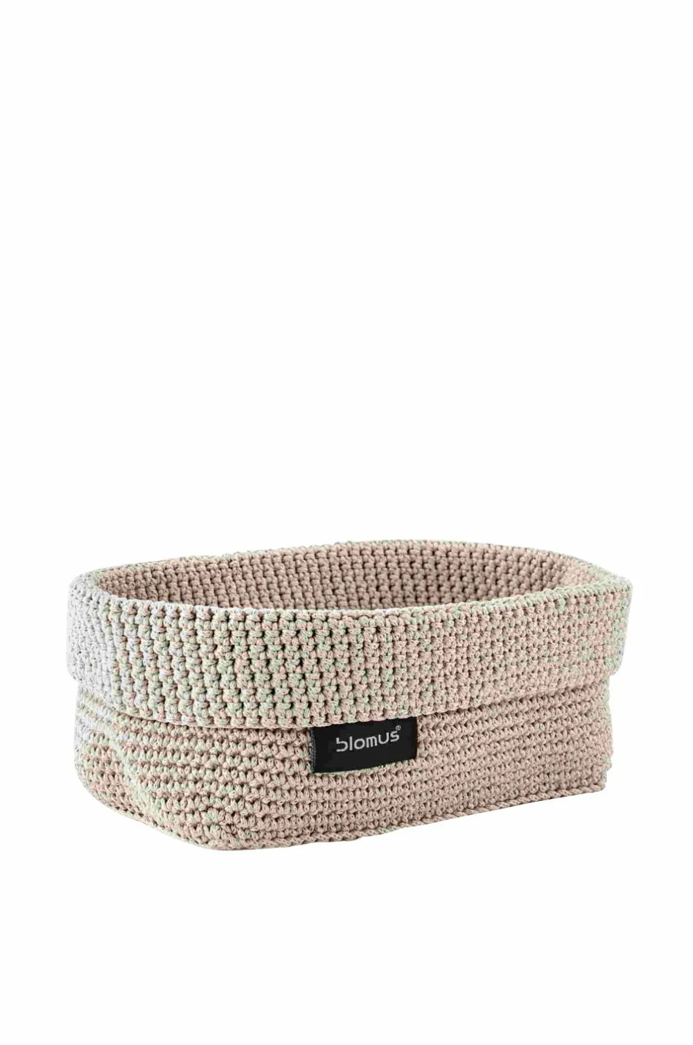 Smuk kurv i hæklet tekstil. Praktisk opbevaring på badeværelset til alle småting om makeup, pads eller vatpinde. Kan også bruges som brødkurv eller opbevaring på kontor eller børneværelse.