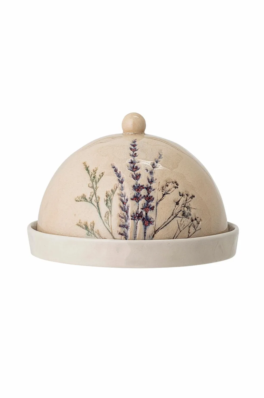 Smørskålen Bea fra Bloomingville er et smukt og praktisk produkt af stentøj i naturlige farver med en krakeleret glasur og et stilfuldt trykt blomstermotiv. Brug den til opbevaring af smør, ost eller andre ting i køleskabet eller som en smuk serveringsbakke. Produktet er håndlavet, og derfor er hvert produkt unikt. Tåler maskinopvask.