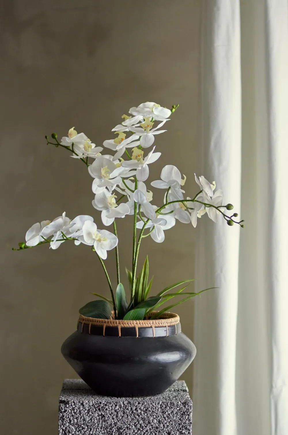 Den kunstige plante orchid fra bloomingville er indbegrebet af tidløs skønhed. Dens hvide, yndefulde blomster strækker sig opad og skaber et look, der er både klassisk og moderne på samme tid. orchid er vedligeholdelsesfri, så du kan nyde dens blomstrende charme uden at skulle bekymre dig om vanding eller pleje. Den leveres med en enkel potte og er klar til at blive placeret i en krukke, der passer til både planten og din indretning. Form stænglerne/grenene før brug for at fremhæve plantens naturlige udseende og tilpasse den til din personlige indretning. Dimension: d16xh84 cm