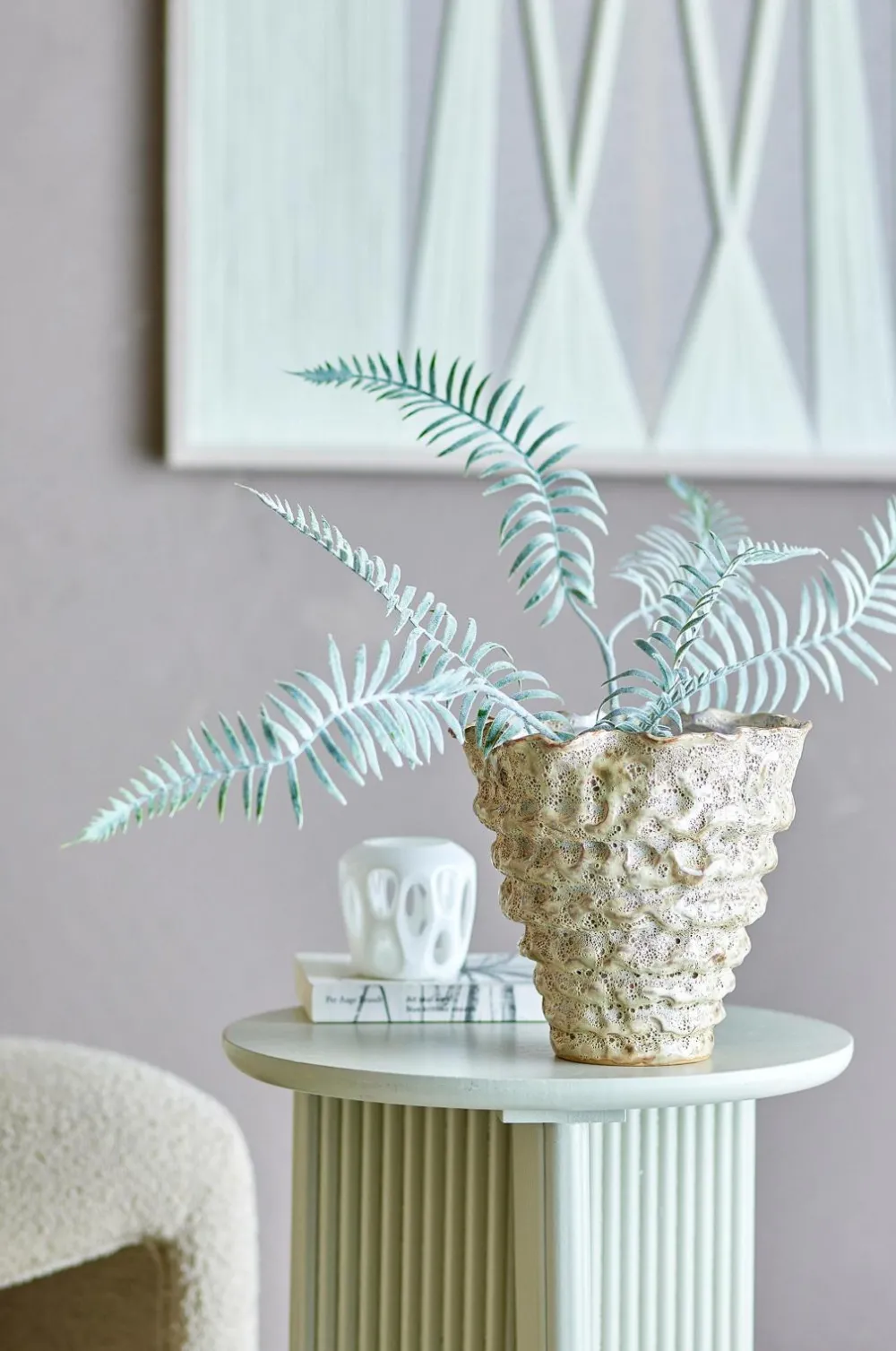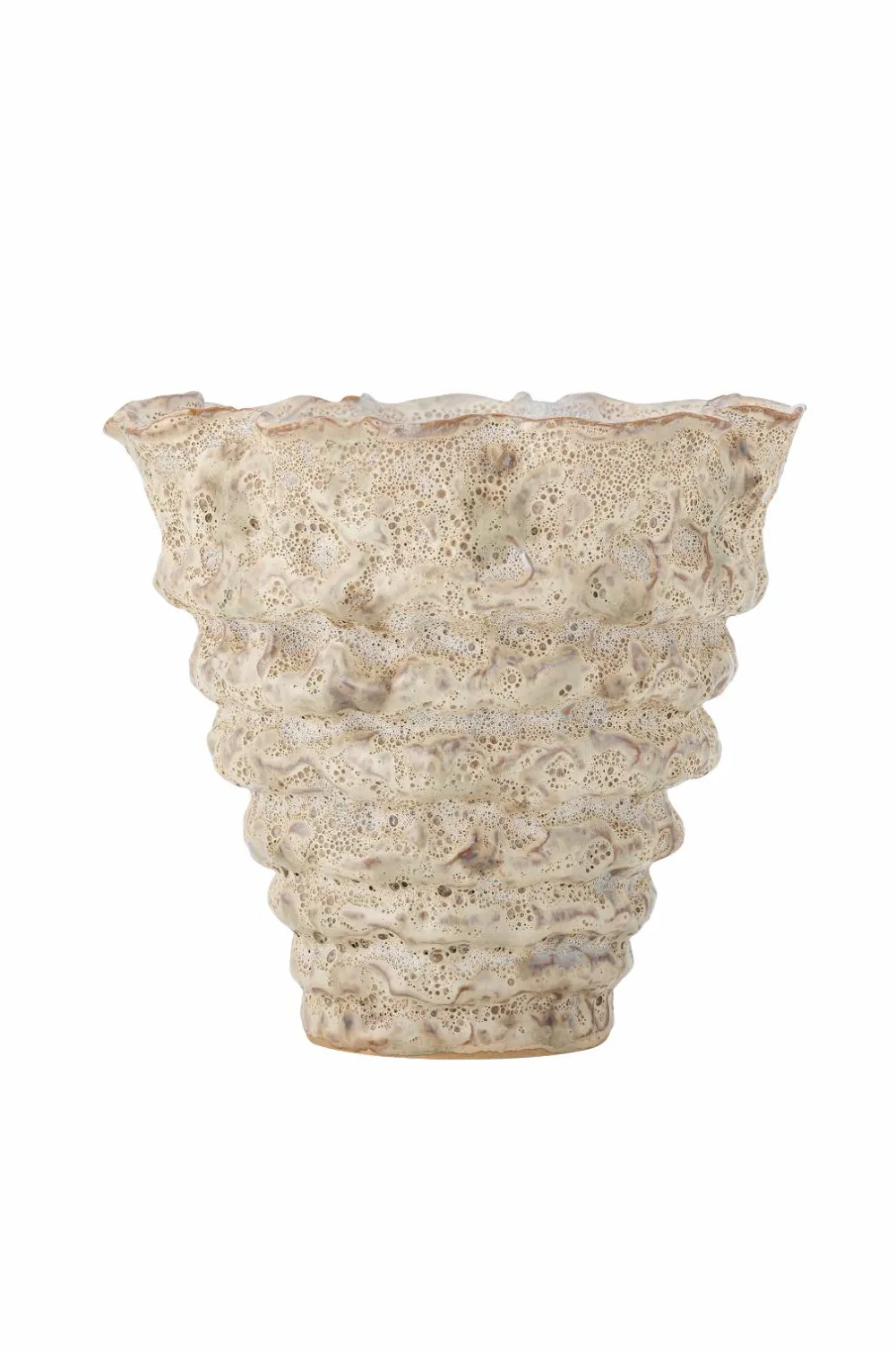 Blomsterpotten Colleen fra Bloomingville er lavet af stentøj med en reaktiv glasur. Den bølgede overflade og rå tekstur giver et organisk look. Glasurens karakter giver variationer, der gør hver potte unik.