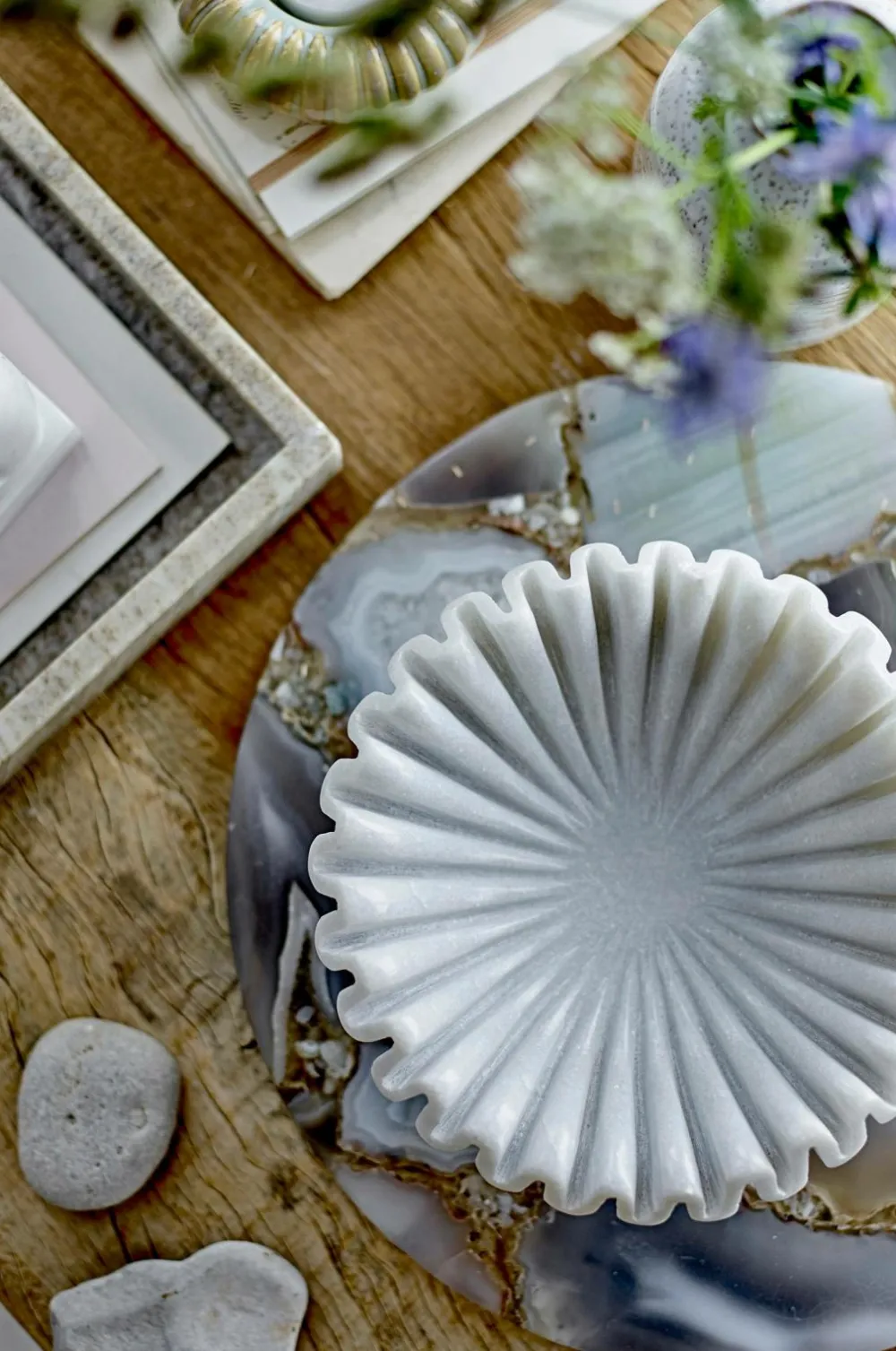 Skålen harmonia fra bloomingville er fremstillet af hvid marmor i et smukt og elegant udskåret design. Udskæringsteknikken er faktisk 100 år gammel og kan ses i paladserne i Rajasthan, Indien. Så smuk og detaljeret i al sin enkelhed. D17,5xh6 cm