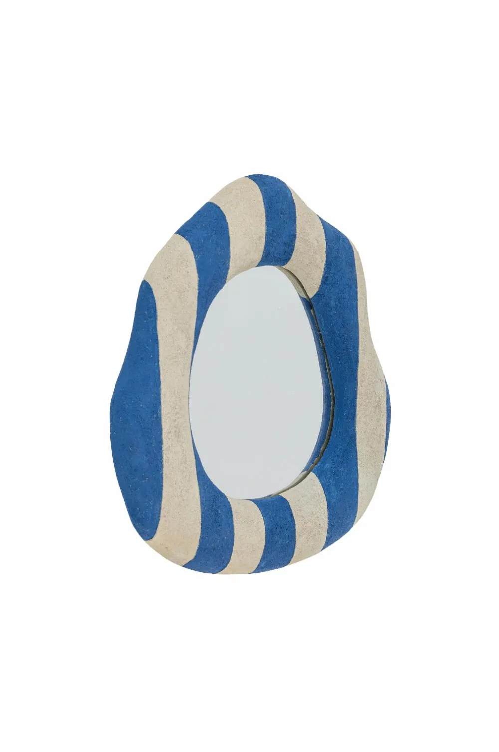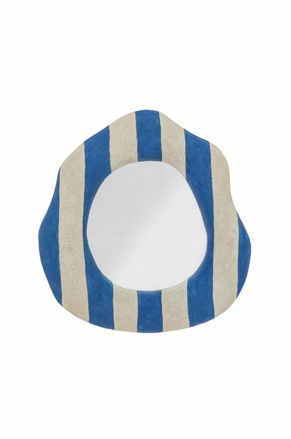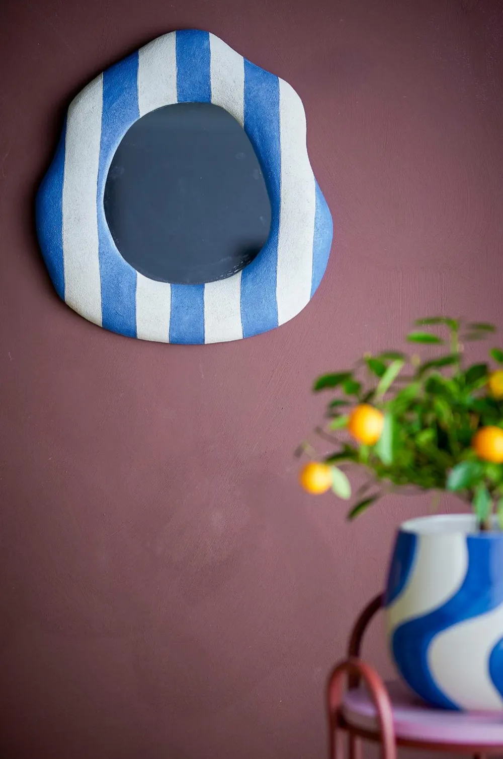 Travis-vægspejlet fra Bloomingville har en ramme i en organisk form med stribede detaljer. Spejlet kan drejes efter behov og fungerer som et dekorativt element i både entréen og stuen.