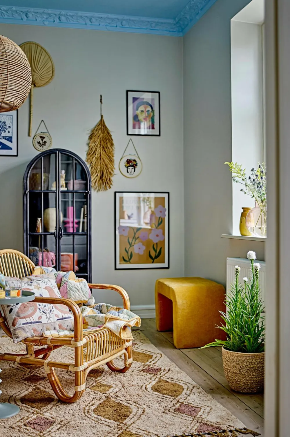 Det quiltede tæppe fra bloomingville har et smukt geometrisk mønster i dejlige farverige nuancer, der fanger øjet. Den ensfarvede bagside giver en smuk kontrast til forsiden, så du kan vende det efter dit humør. Uanset om det er draperet over en sofa, en stol eller i fodenden af en seng, giver crew-quilten et hyggeligt touch til rummet. L150xw125 cm