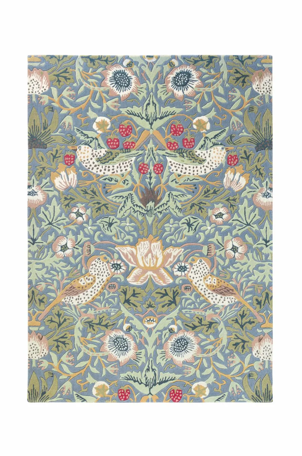 Morris-kollektionen er håndtuftet og fremstillet i Indien. Luvmaterialet er ren ny uld, bagsiden er lavet af bomuld/latex. Den samlede højde er 12 mm.
