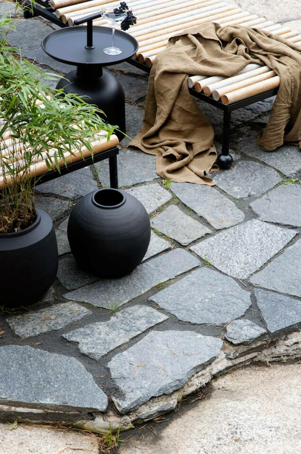 Krukke Bee er rund og blød i formen, og den matsort farve bliver en skøn kontrast til alle farverne som blomster og planter tilfører. Materiale af terrakotta. Højde 29,5 cm og diameter 28 cm.