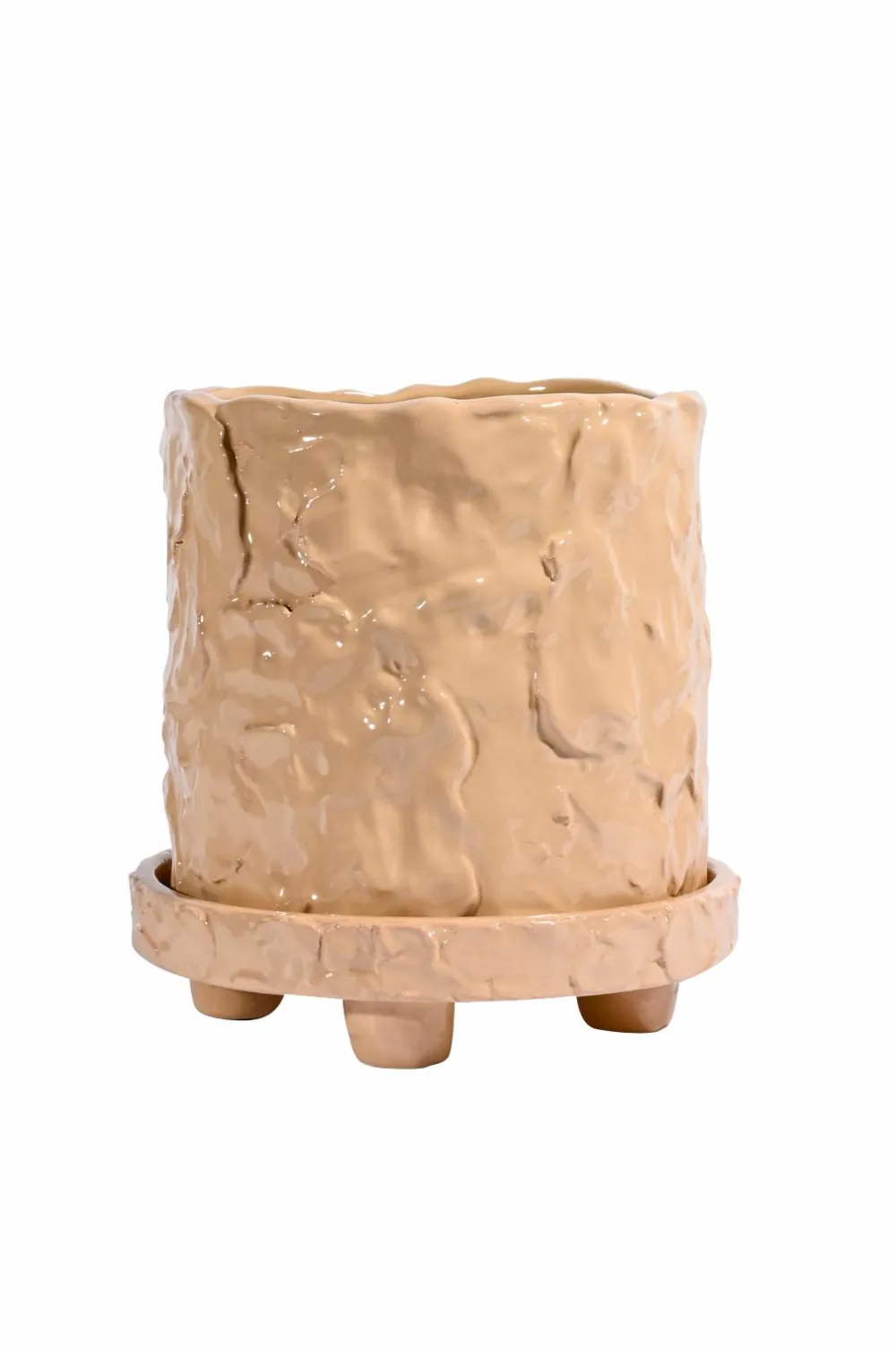 Muddy er en krukke med sjæl og en stærk personlighed, ligesom Byon selv. Den er inspireret af ufuldkommenhed og en lidt rå æstetik og har en udtalt lertekstur under den blanke glasur. Den rå overflade giver krukken et ufærdigt look, som ifølge Emma giver den en unik karakter og identitet. Muddy er levende og udtryksfuld, hvilket gør den til et markant indslag i ethvert hjem. Krukken leveres med en hævet underkop og har drænhuller, hvilket gør den både praktisk og dekorativ. Fås i to størrelser og en række farver. Håndlavet af stentøj. Variationer i farve og tekstur kan forekomme. Hver potte er unik. Design Byon x Emma Widell. Leveres i en Byon-æske.