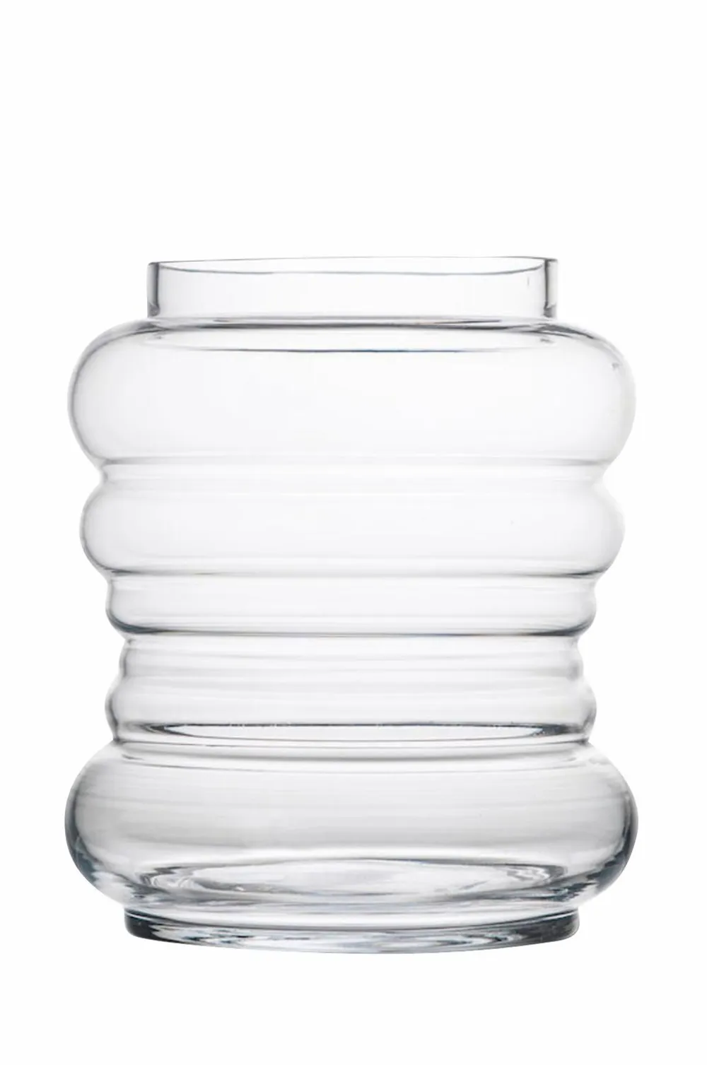 En vase med bløde kurver i klart glas. Enkel og smuk – passer ind i ethvert hjem og på ethvert bord. Højde 20 cm og diameter 17,5 cm.