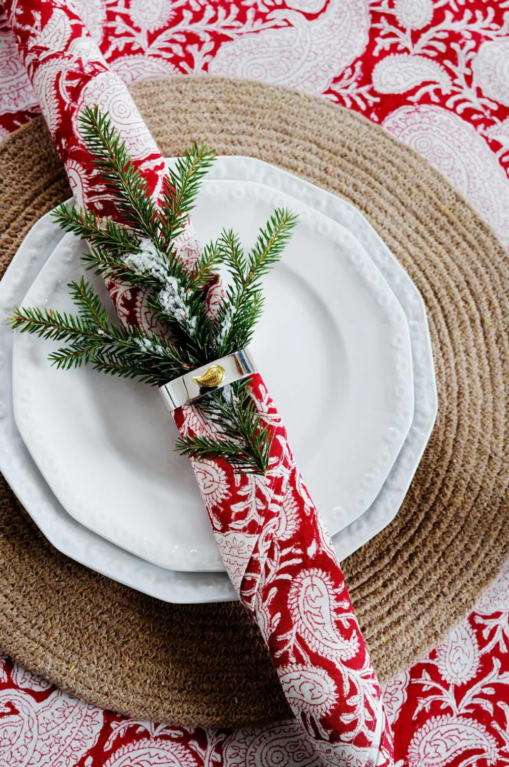 Smuk dug af bomuld med håndtrykt mønster i traditionel indisk blokprintteknik.