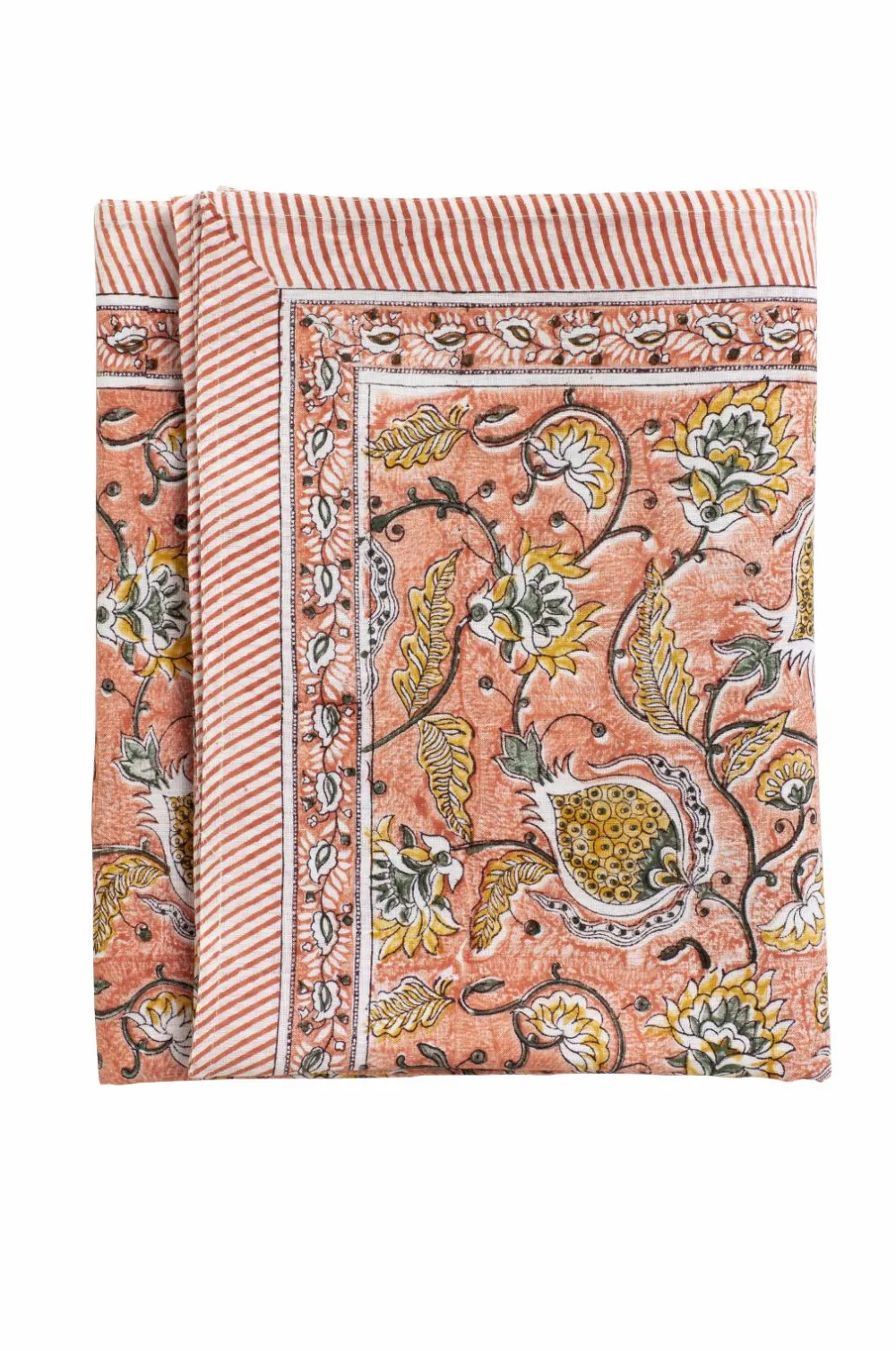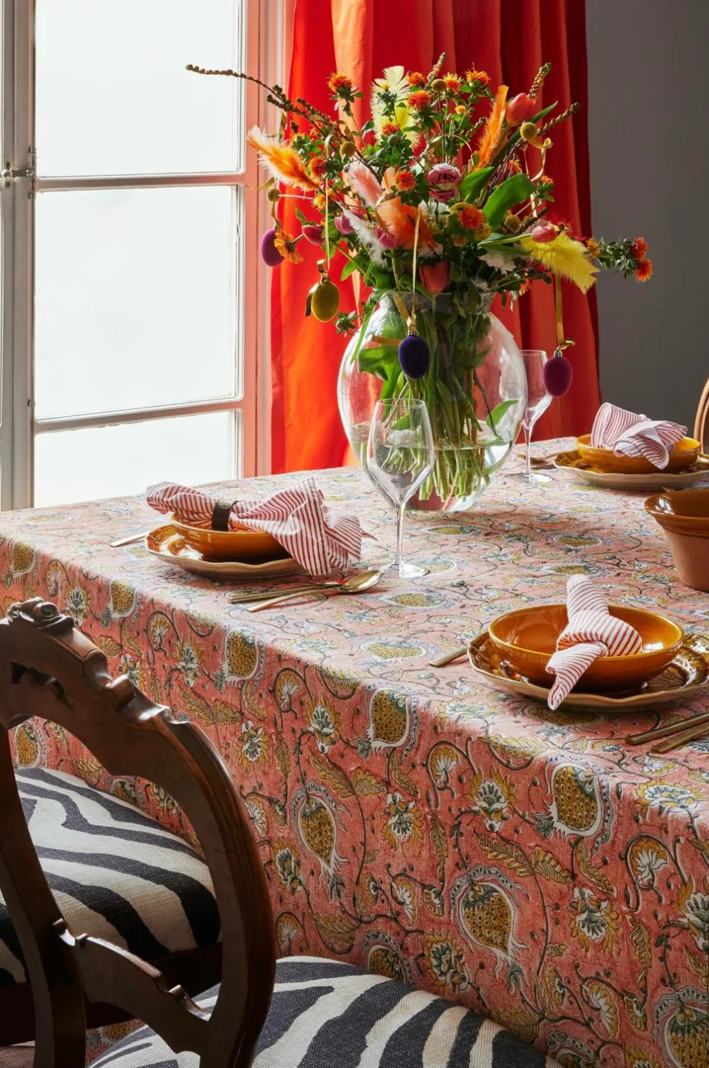 Eksklusiv hørdug fra brandet Chamois med et elegant og eksotisk mønster. Mønstret er trykt i hånden i traditionel indisk blokprintteknik. Et unikt håndværk som giver dugen et levende og dekorativt udtryk.