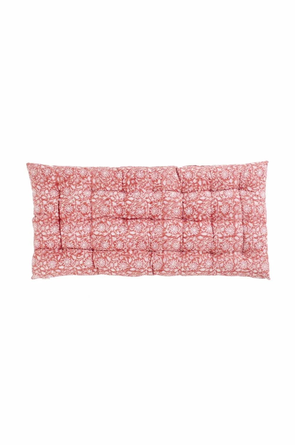 Sædehynde med smukt mønster og dekorative kvaster. Fås i flere størrelser. Stoffet er håndtrykt i den klassiske indiske bloktryksteknik. En ældgammel teknik, der giver mønsteret sit levende og dekorative udtryk. Må kun renses kemisk.