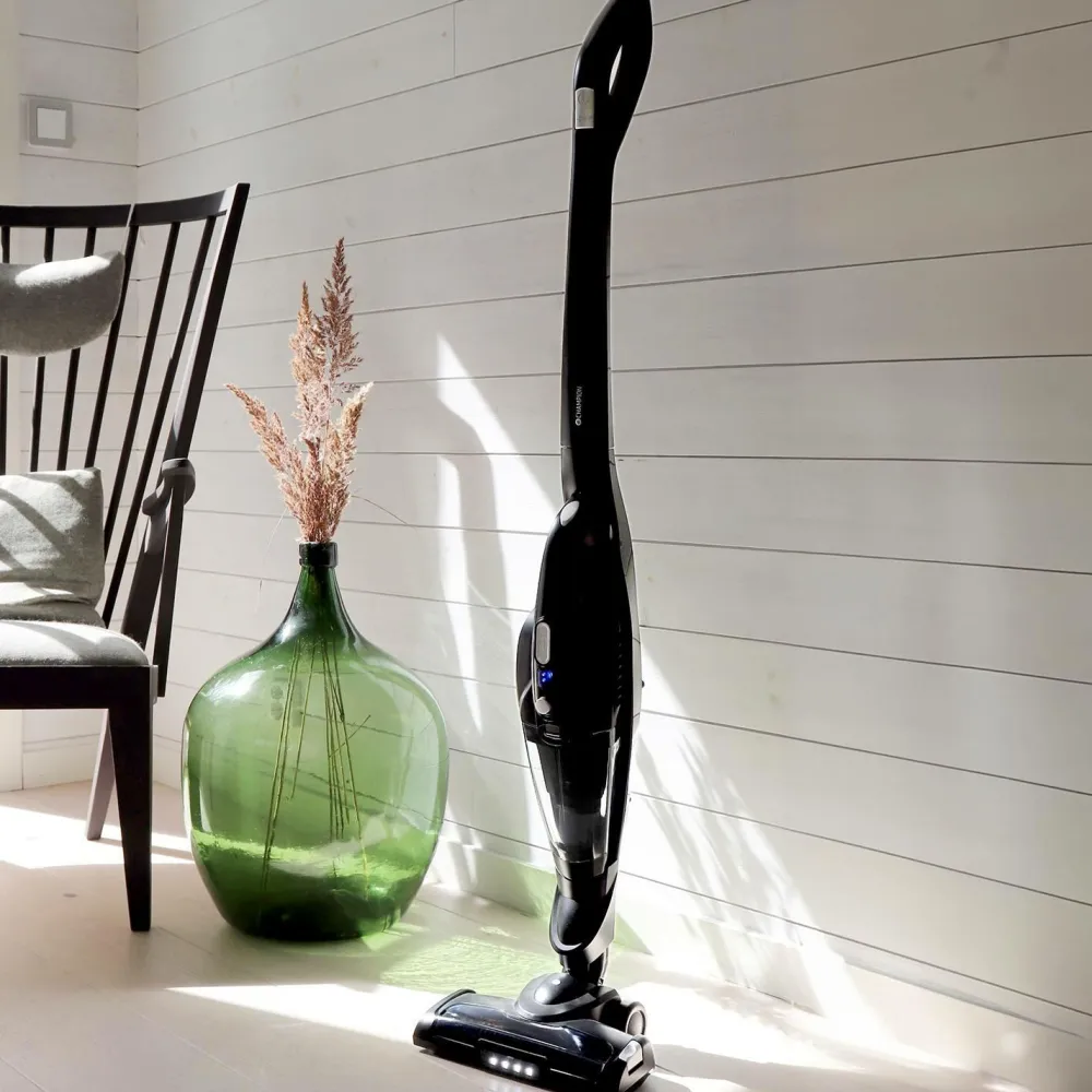 Champion Eco Clean 2in1 SD420 er en kraftig skaftstøvsuger med en aftagelig håndholdt enhed, der giver en god batterilevetid. Den er designet til at supplere den nordiske boligæstetik. Støvsugeren leveres med en basestation, der kan tilsluttes en stikkontakt, så den er nem at oplade og opbevare. Basestationen har også plads til de to medfølgende mundstykker til den håndholdte enhed.