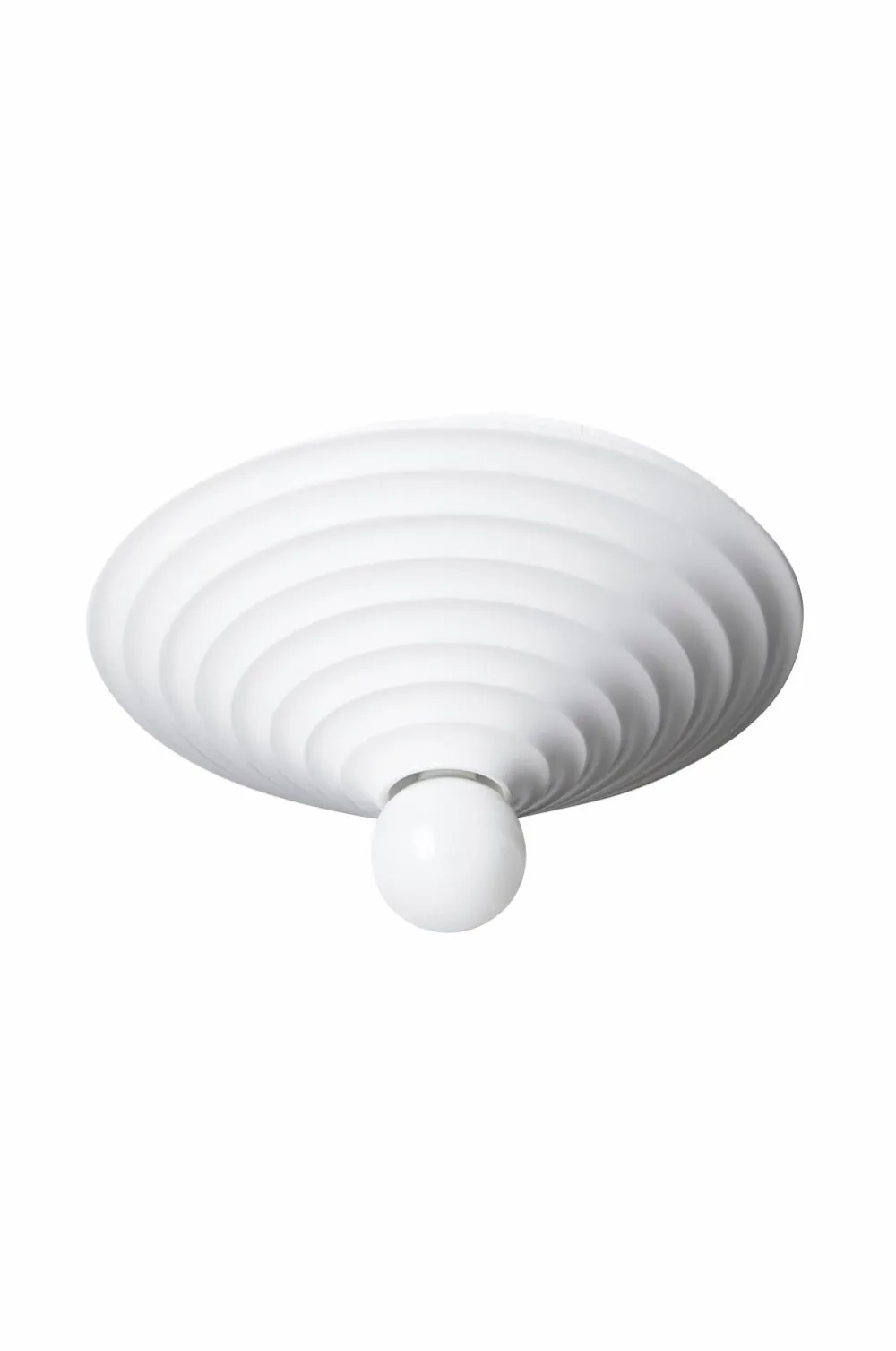 Loop 45 har lighed med en arkitektonisk roset, der bruges til at dekorere lofter i et rum. Brug en større matteret lyskilde, og lampen giver et blødt generelt lys eller en diffus atmosfærisk glød, når den er dæmpet. Den passer perfekt i rum, hvor en hængende loftslampe ikke passer ind. Meget nem at installere med et krogophæng. Designet af monika mulder. Pære og loftsstik medfølger ikke.