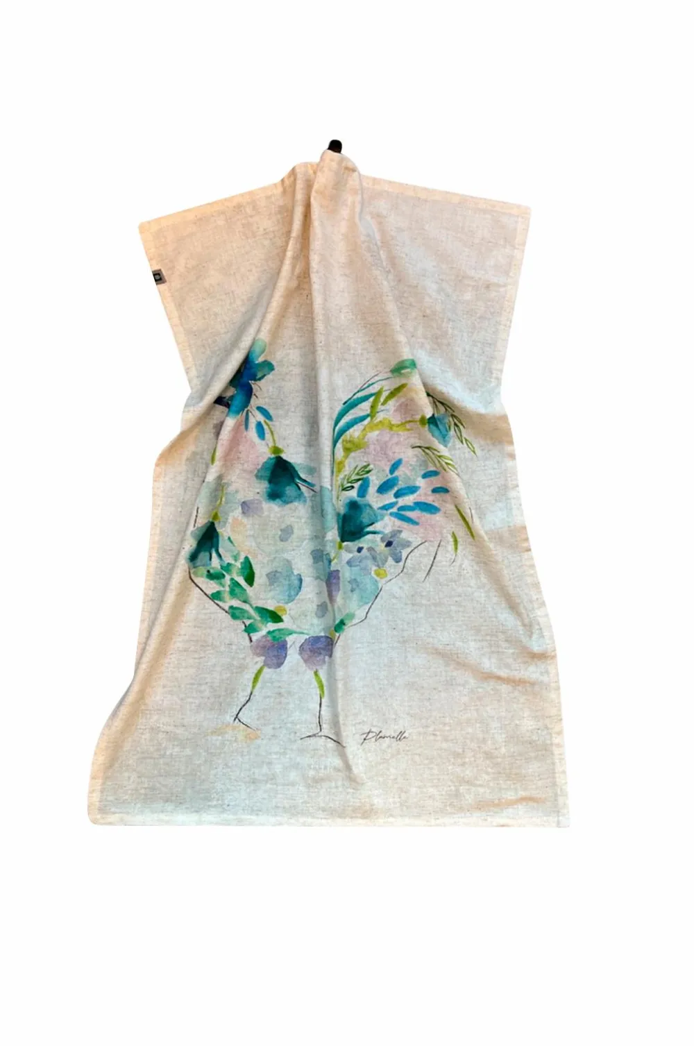 Køkkenhåndklæde plumelle. Håndmalet akvarelmønster trykt på et smukt bomuldslinne-stof. Designet af maria söderberg.