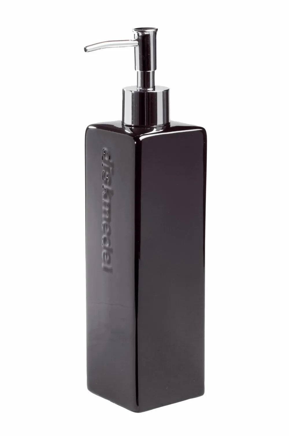 Keramisk sæbedispenser med tekst i relief. Dette er en dekorativ og funktionel genstand designet af Marita Lord , der er kendt for at skabe hverdagsprodukter med fokus på keramiske materialer.