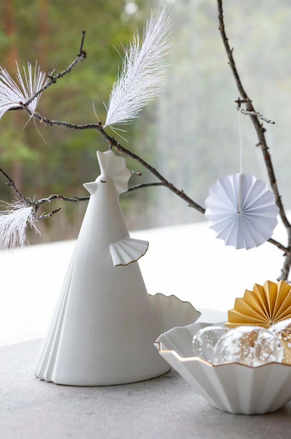 Veckade VERA. En moderne påskehøne i porcelænsler. Mat, blank og med gulddetaljer. Designet af Marita Lord.