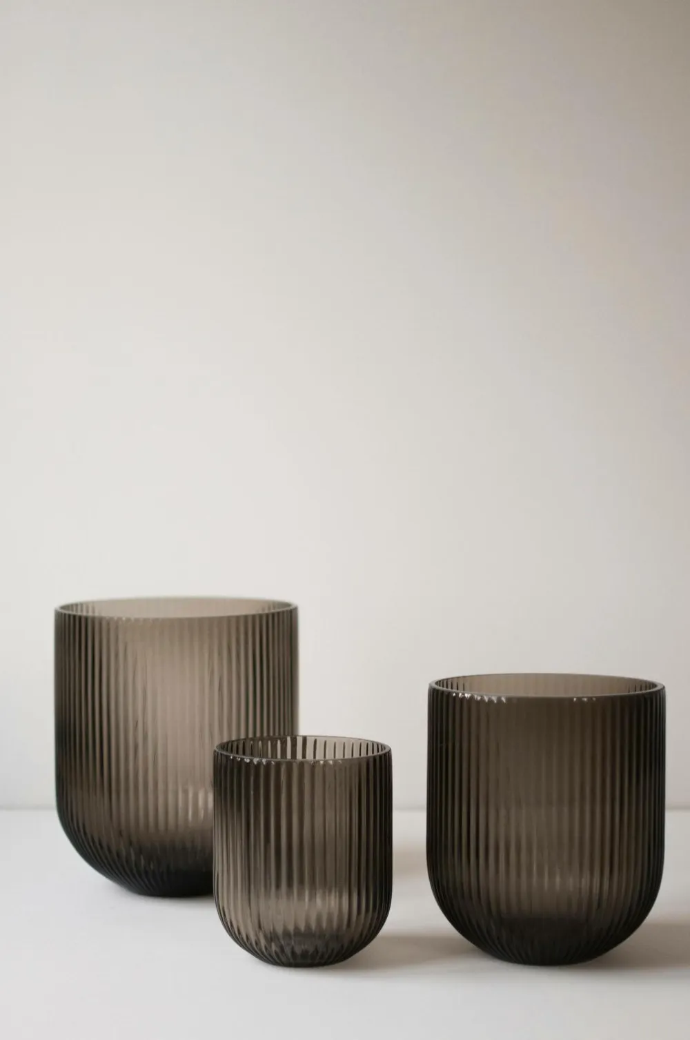 Kollektionen Simple stripe udvides og fås nu i riflet glas. Dejligt med stearinlys eller løse blomster – ligesom Simple i gennemsigtigt glas.