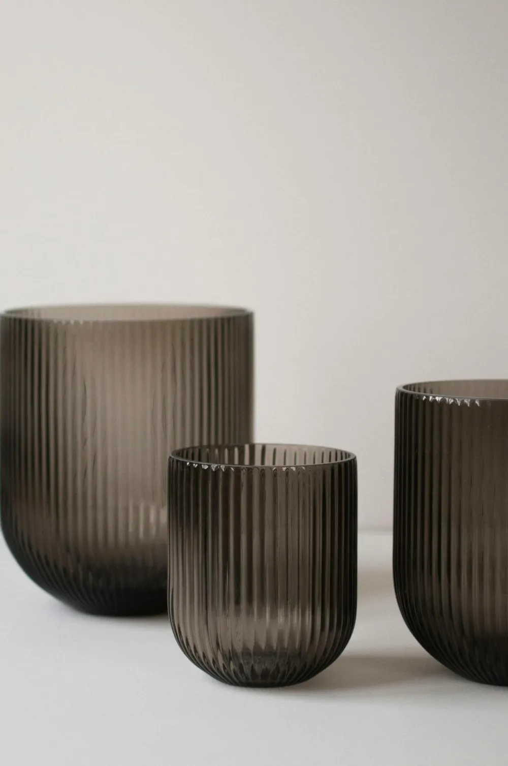 Kollektionen Simple stripe udvides og fås nu i riflet glas. Dejligt med stearinlys eller løse blomster – ligesom Simple i gennemsigtigt glas.