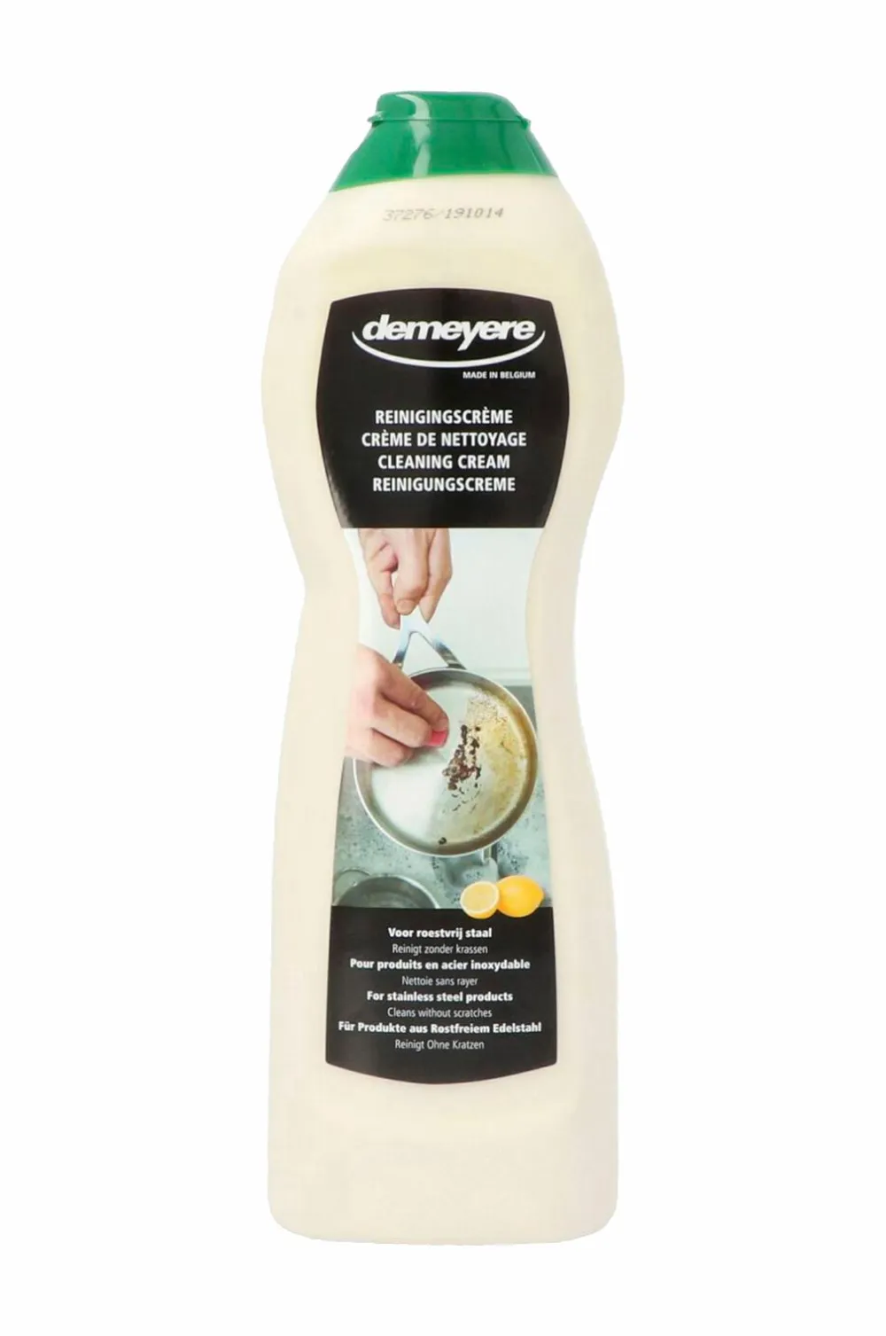 Rengøringscreme til rustfrit stål, som let fjerner selv den mest genstridige snavs. Produktet rengør og affedter uden ridser. Velegnet til alle Demeyere-produkter og til andre overflader i rustfrit stål, for eksempel komfur eller vask. Med en frisk duft af citron.