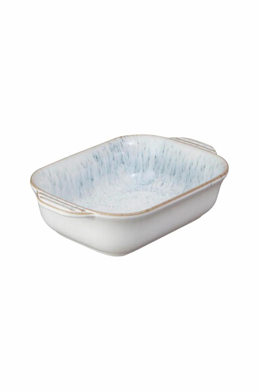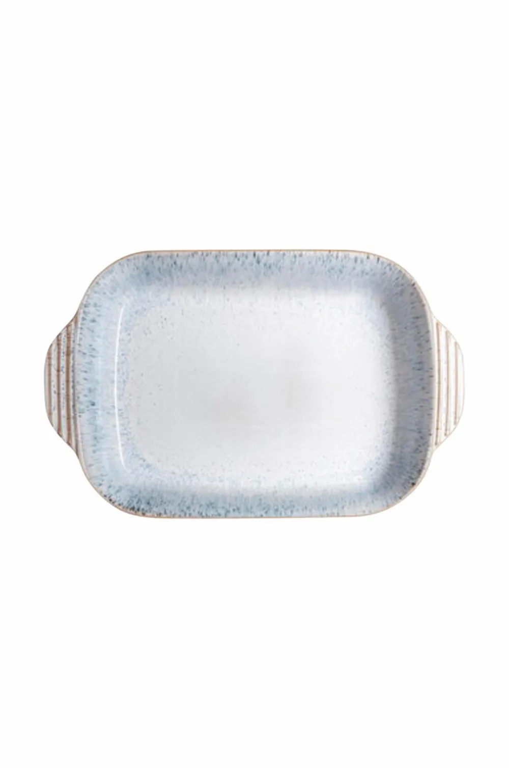 Det lille rektangulære ovnfad kiln blue fra denby er et alsidigt fad til bagning og servering. Det er fremstillet af stentøj i høj kvalitet med en rolig blue glasur og tåler ovn, opvaskemaskine og mikroovn. Perfekt til individuelle portioner eller elegant tilbehør. 10 års garanti, tåler ovn, fryser og opvaskemaskine