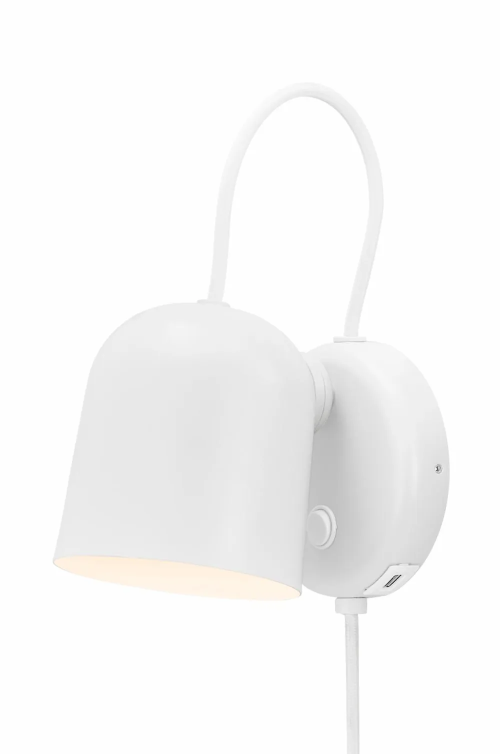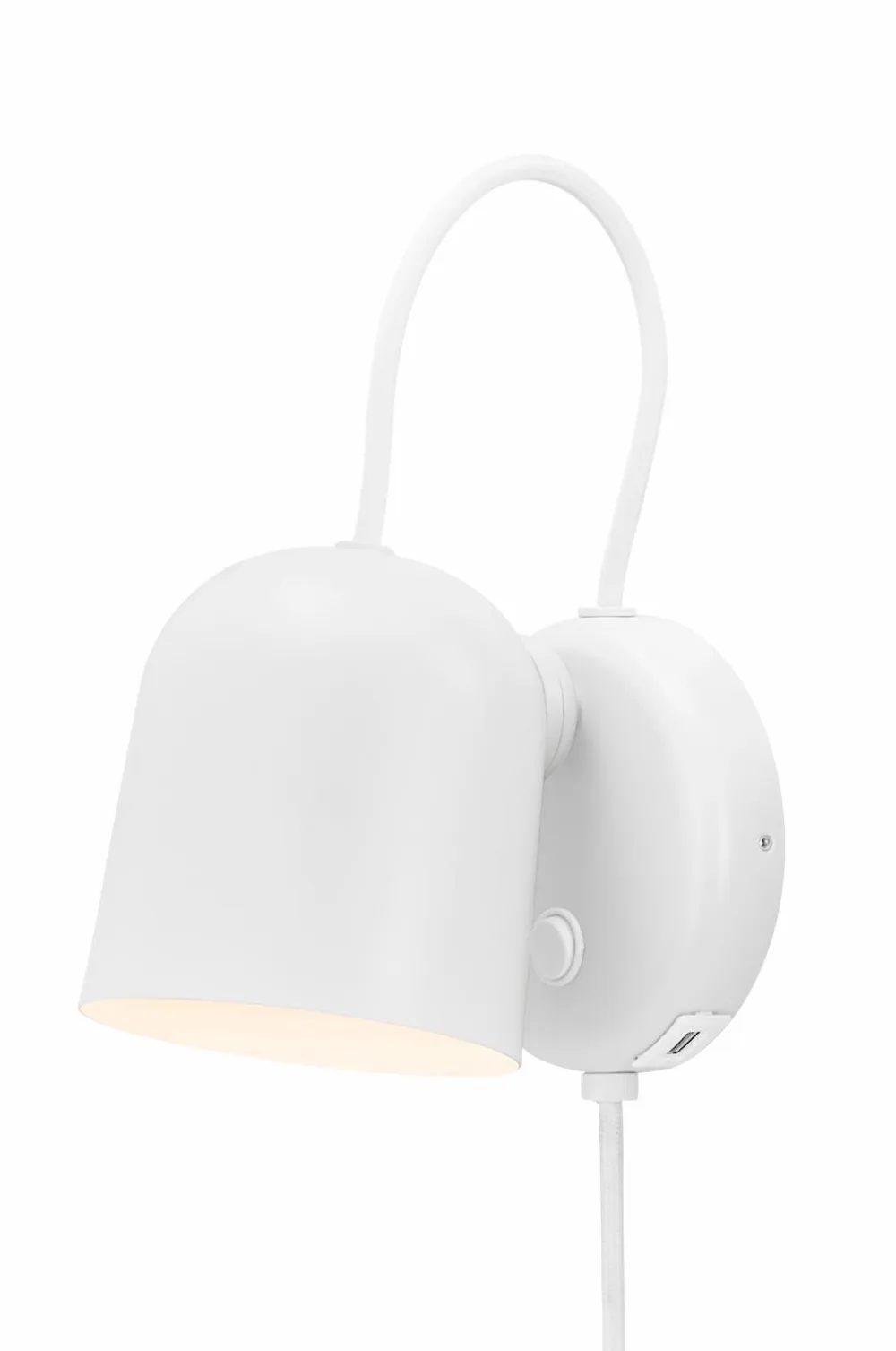 Angle væglampe af den danske designer maria berntsen er et moderne og tidløst design, der passer perfekt som sengelampe eller over badeværelsesspejlet. Lampen er udført i et legende og interaktivt design med en magnetisk fastgjort skærm, der nemt kan justeres, så den passer til dine behov. Drej, vip eller flyt skærmen for at få et retningsbestemt eller indirekte lys. En usb-opladningsport på siden giver dig mulighed for at oplade din telefon eller andre enheder.